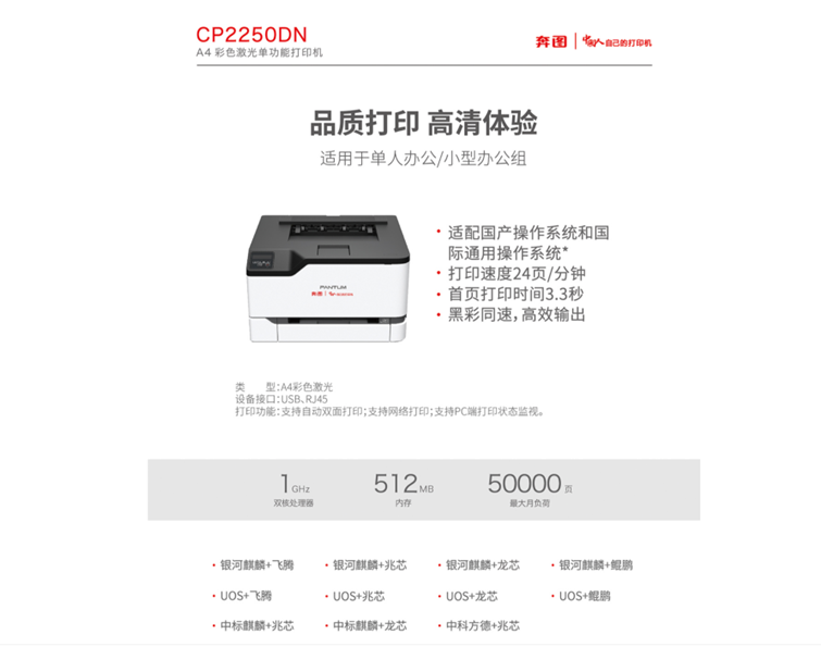 > 奔图 (PANTUM)CP2250DN A4彩色激光单功能打印机
