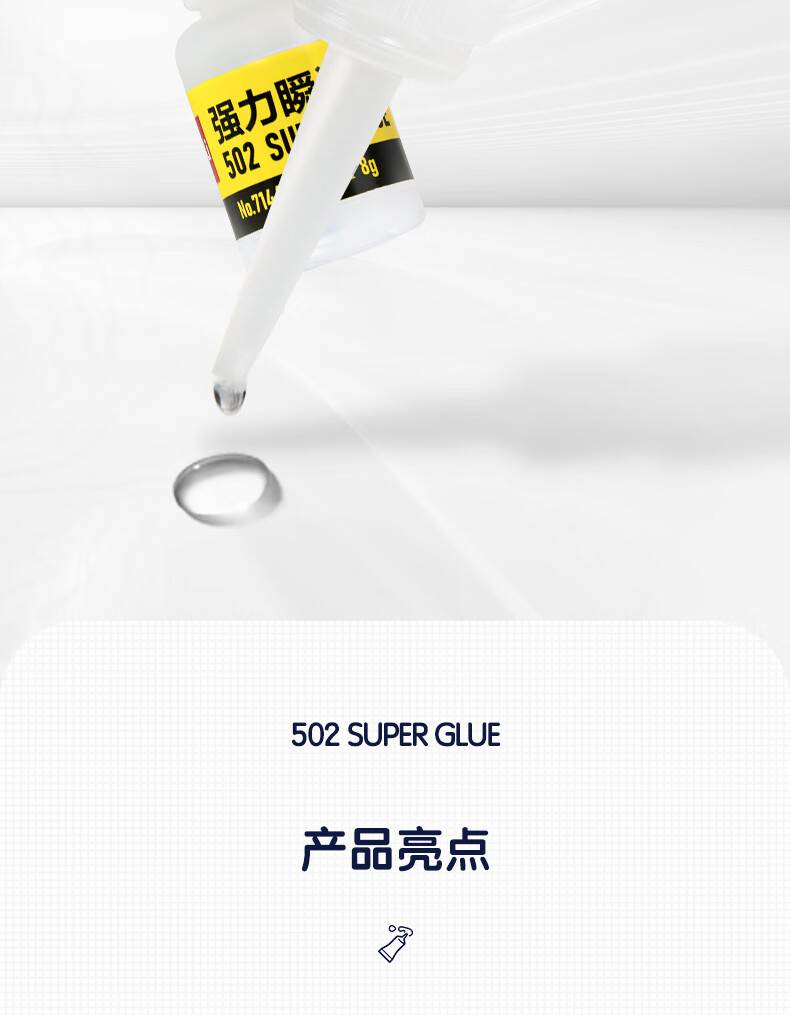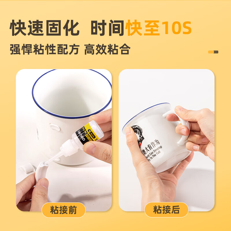 > 得力(deli)502胶水 100%原胶强力胶水 准确点胶 无痕透明胶粘剂 可粘金属陶瓷木材 8g单支凑单 7144