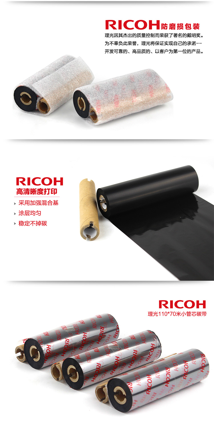 > 理光(RICOH)B110CR 全树脂碳带 热转印标签机色带 60MM*300M(20卷/箱)