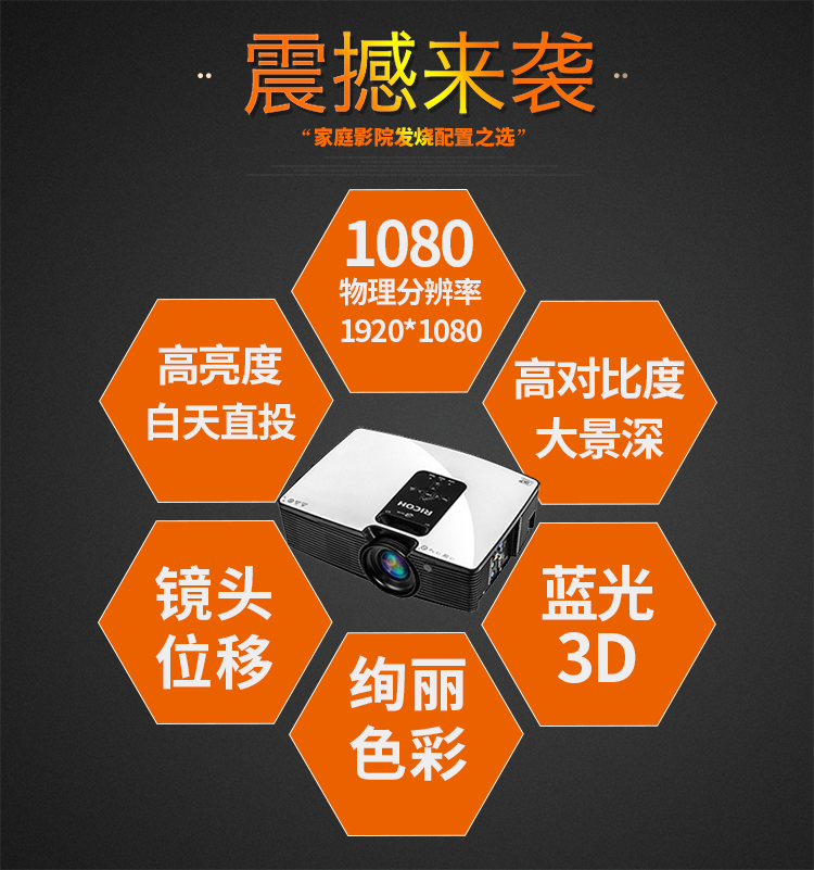 > 理光(RICOH)投影仪1080P高清家用办公商务3D投影 PJ-HD900【3300流明高清】 官方标配