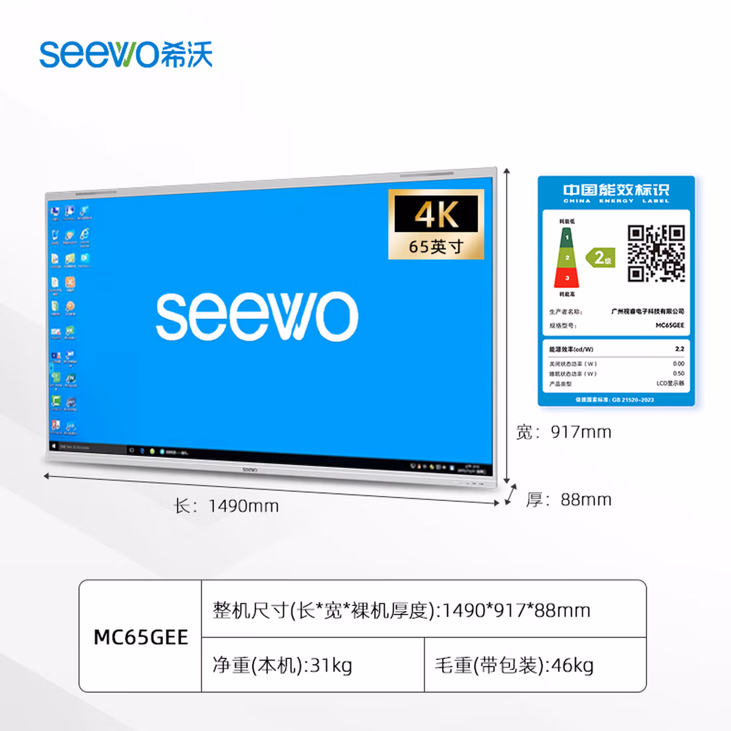> 希沃(seewo)65英寸 MC65GEE 会议平板4k超高清智能触屏一体机win10 电子白板 i5 8G 256G