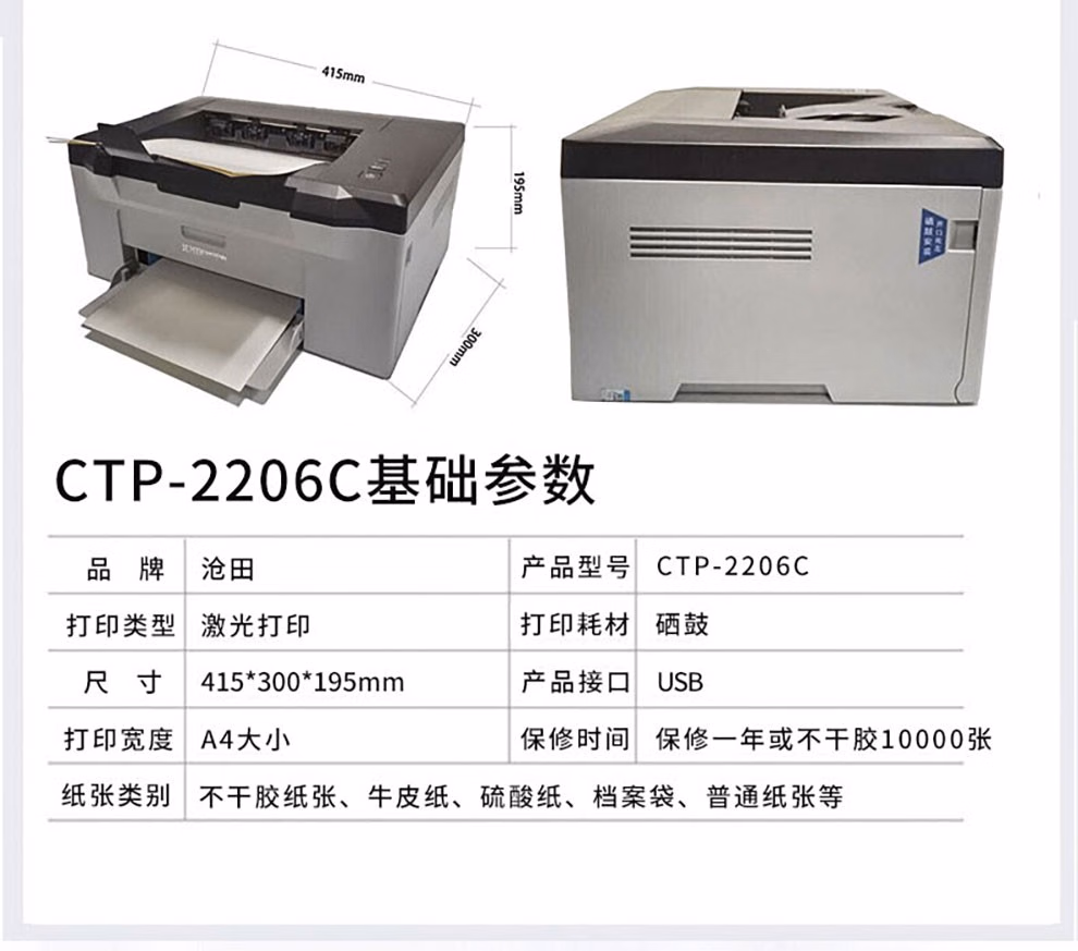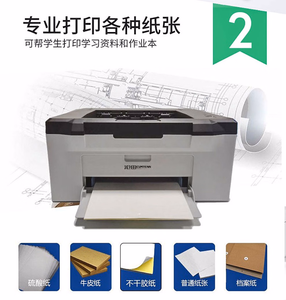 > CUMTENN CTP-2206黑白激光a4不干胶打印机家用商用商标凭证标签纸硫酸纸牛皮纸专用打印多功能激光打印机 CTP-2206
