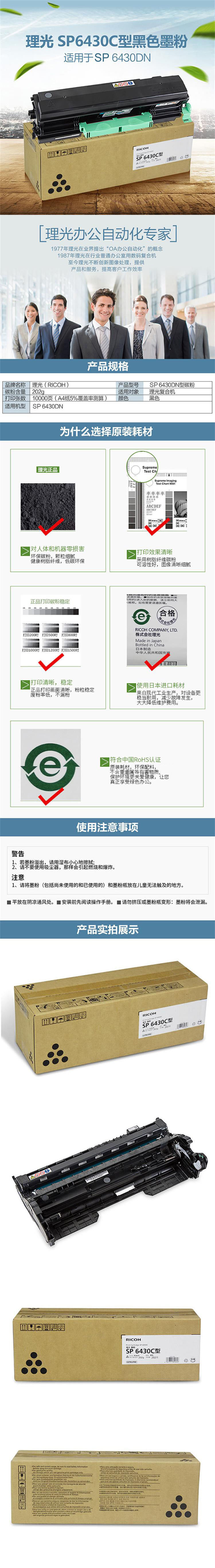 理光(Ricoh)SP 6430C型 黑色墨粉盒1支装 (适用SP 6430DN)