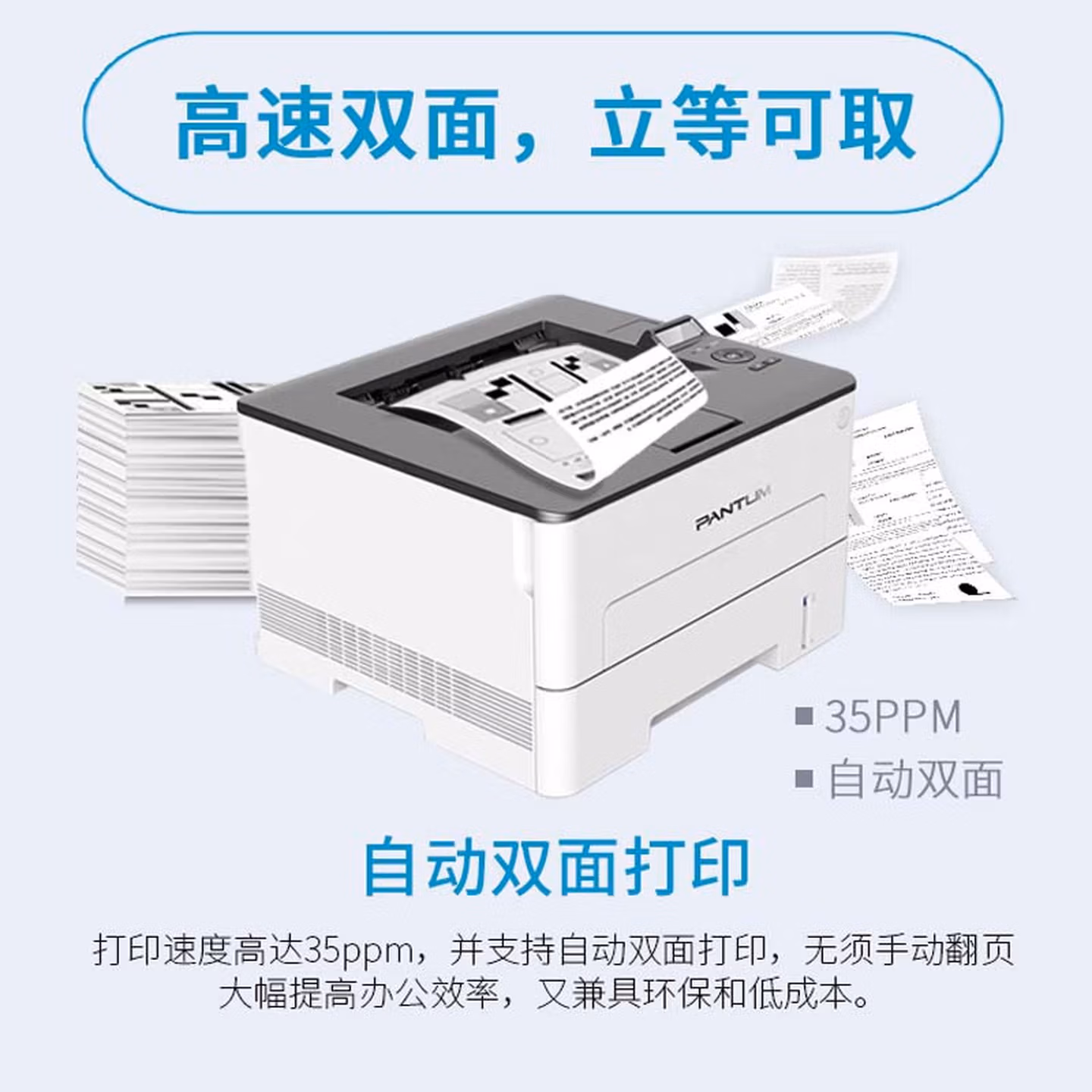奔图(PANTUM) 打印机 P3301DN A4黑白激光打印机 A5加速打印58ppm自动双面 USB/有线连接打印机