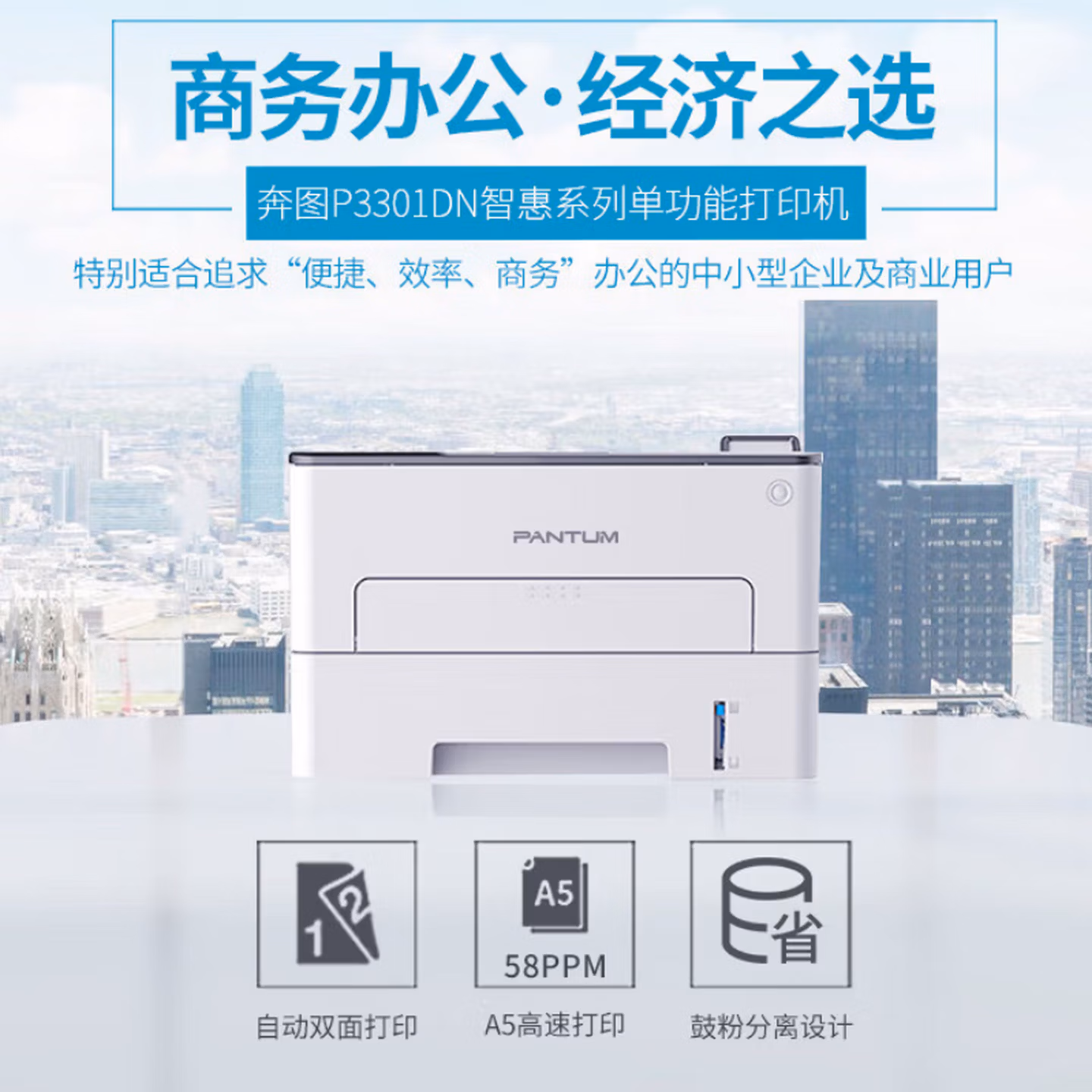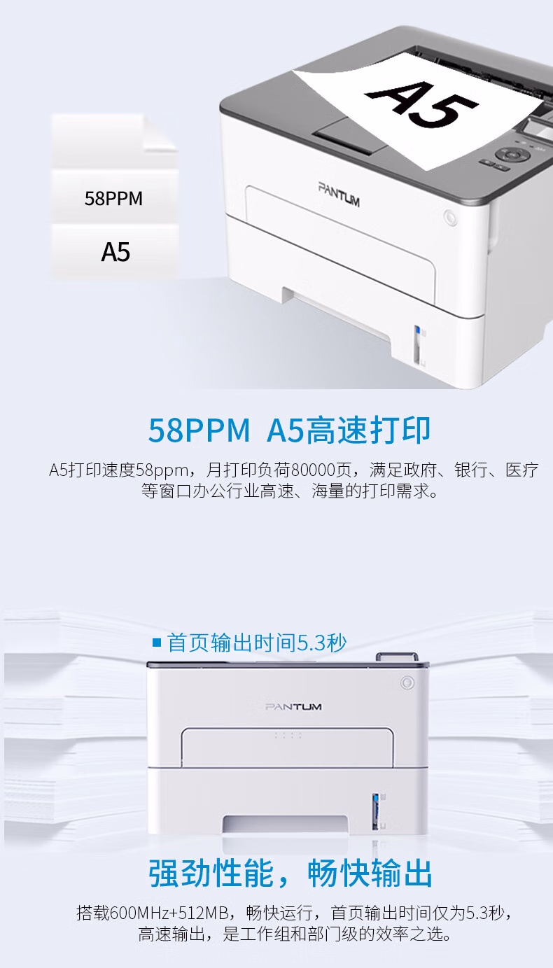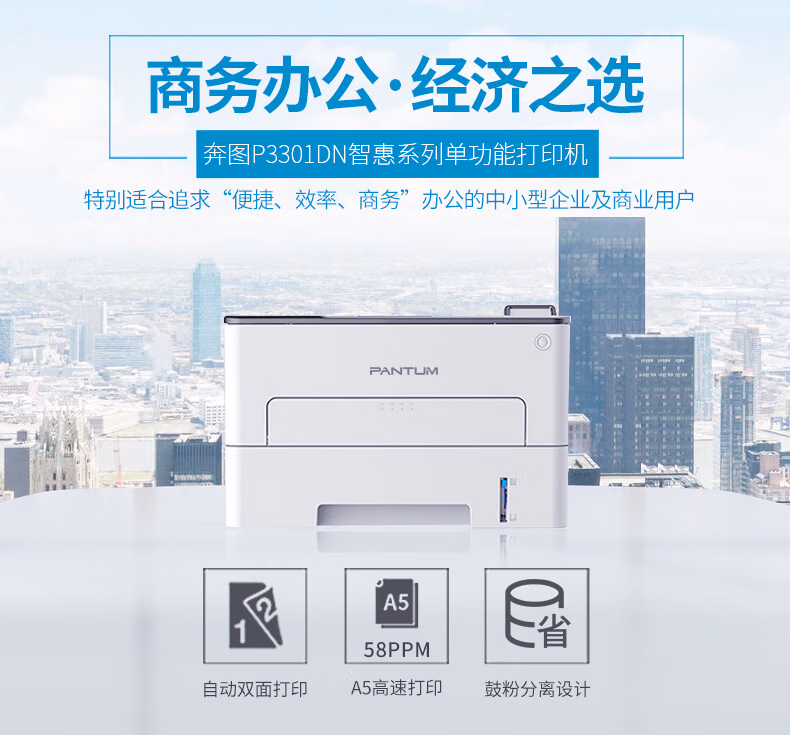 > 奔图(PANTUM) 打印机 P3301DN A4黑白激光打印机 A5加速打印58ppm自动双面 USB/有线连接打印机