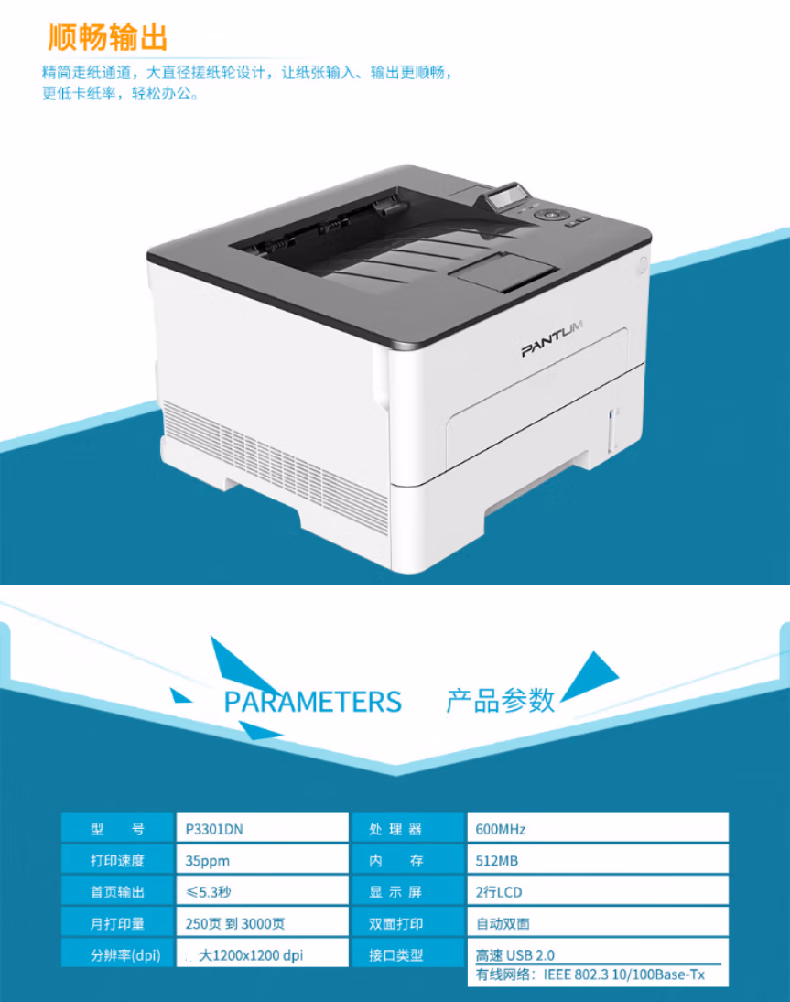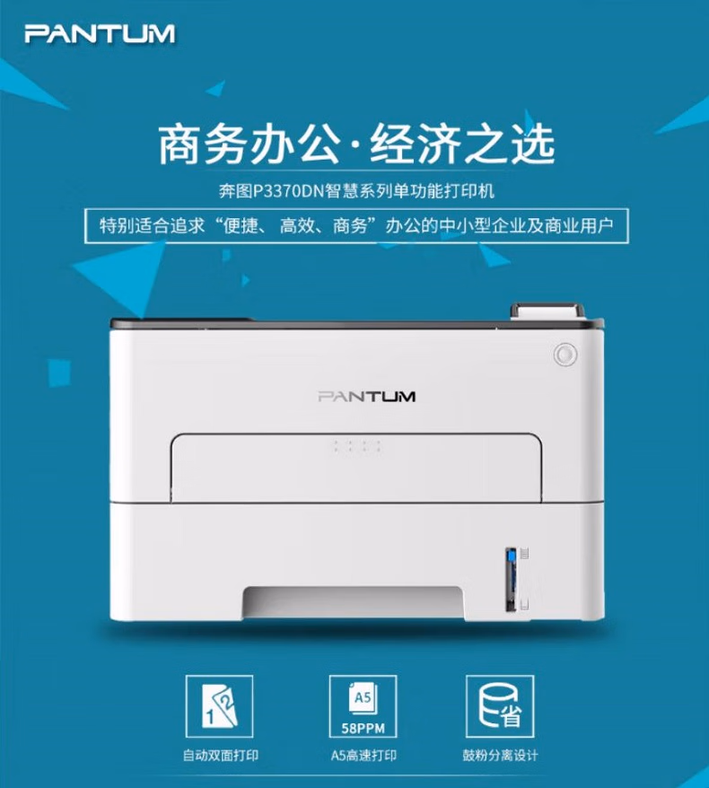 > 奔图(PANTUM)P3370DN 商用黑白激光打印机 自动双面打印 A4打印 USB打印 鼓粉分离