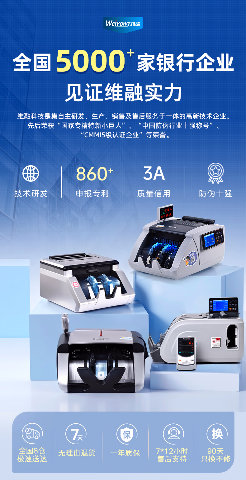 > 维融(weirong)I7高端B类验点钞机银行专用小型家用办公商用新版人民币语音智能数钱A类主板点钞机