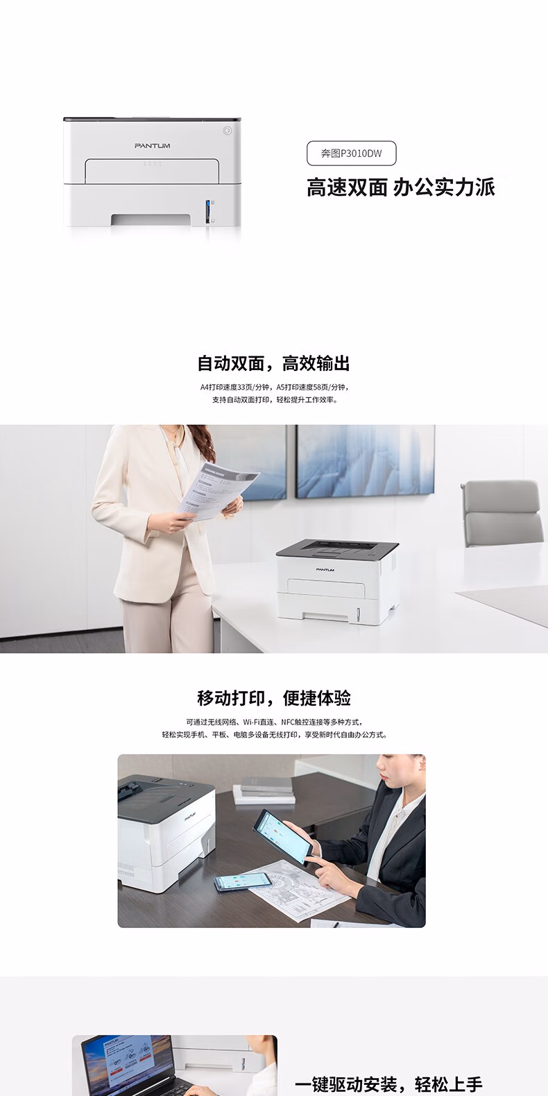 > 奔图(PANTUM)P3010DW黑白激光打印机