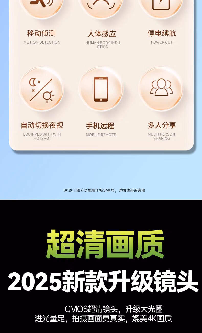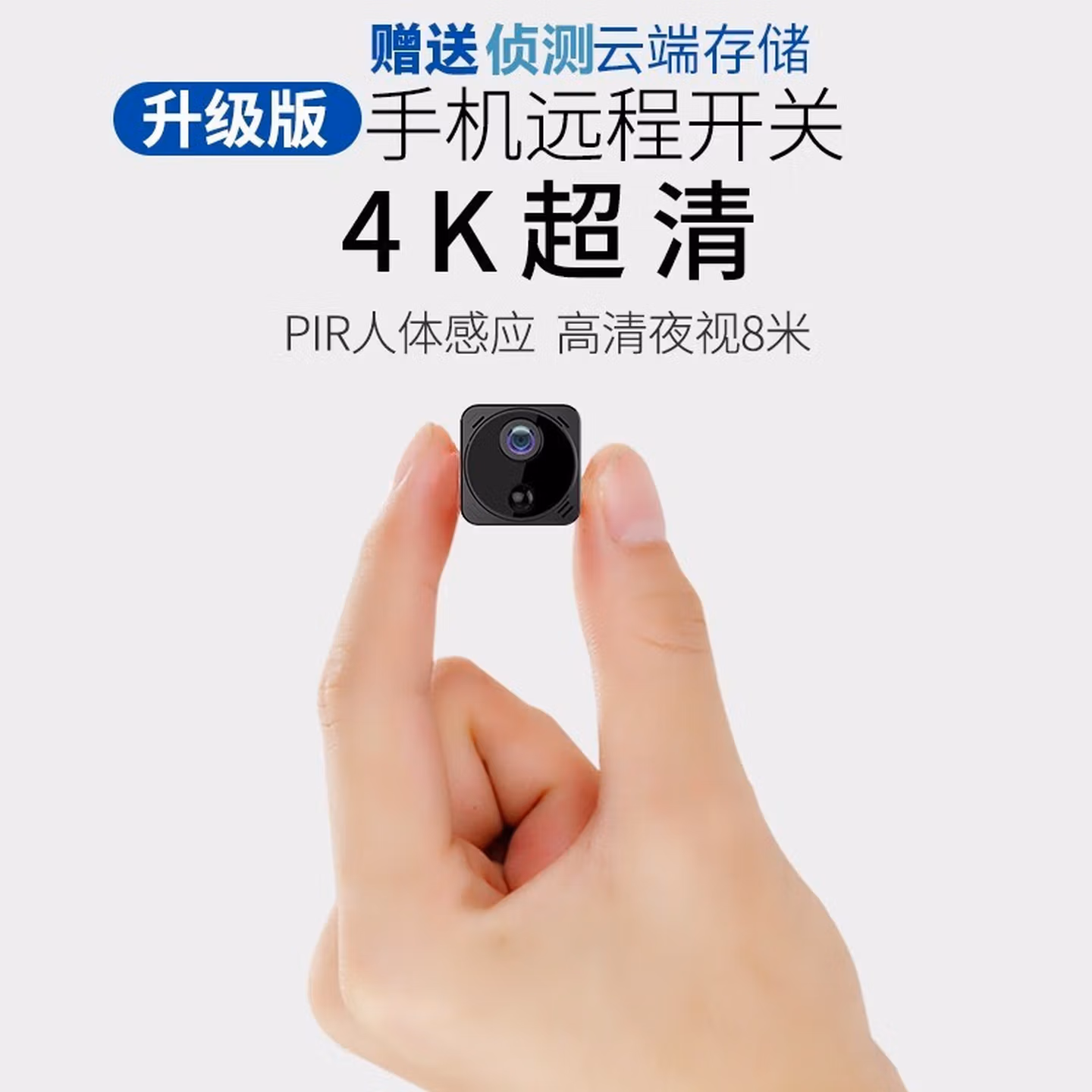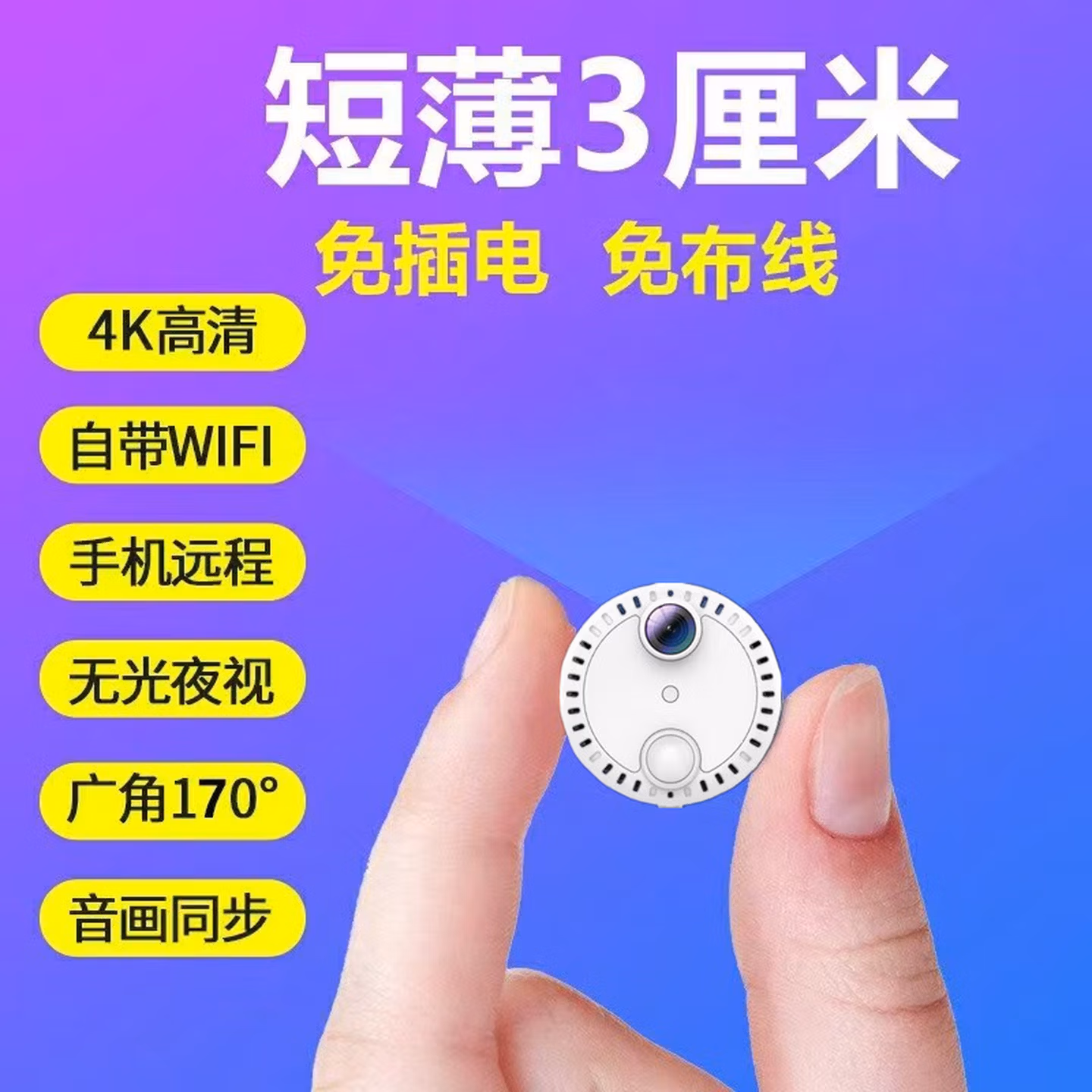 朗尉4K超清小型监控无线免插电监控摄像头无需连wifi终身免流量监控器家用无死角家庭微高清室内摄影头 4K超清wifi升级版黑色【32G卡】