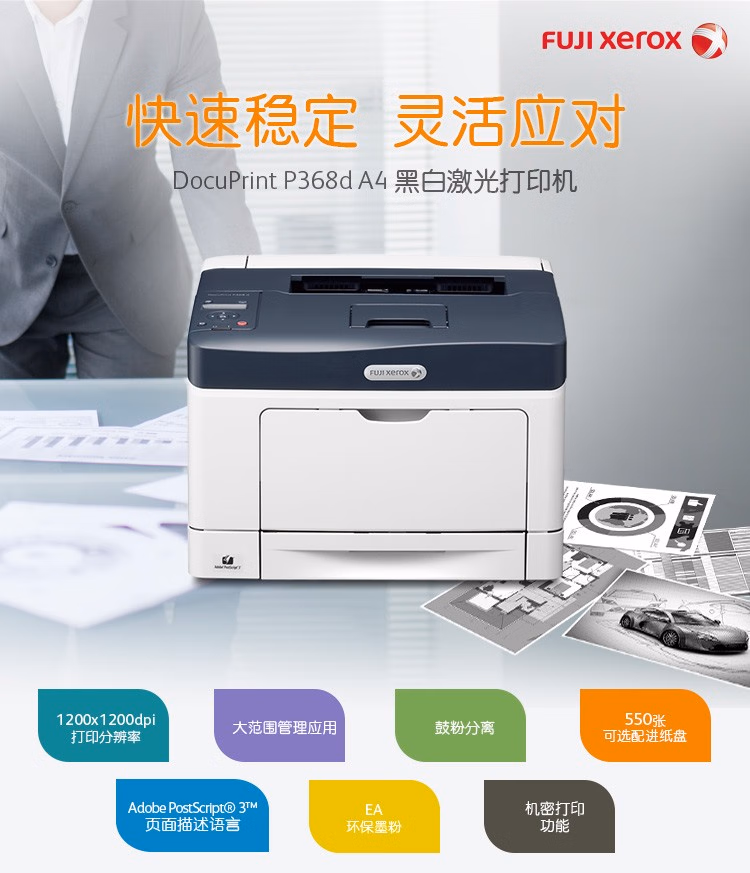 富士(FUJIFILM)P355db P368D P355D黑白网络双面激光打印机 P355d 网络打印 双面