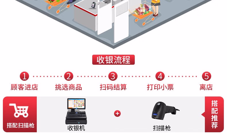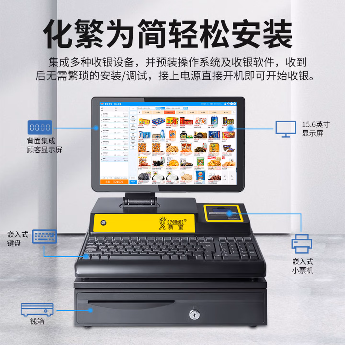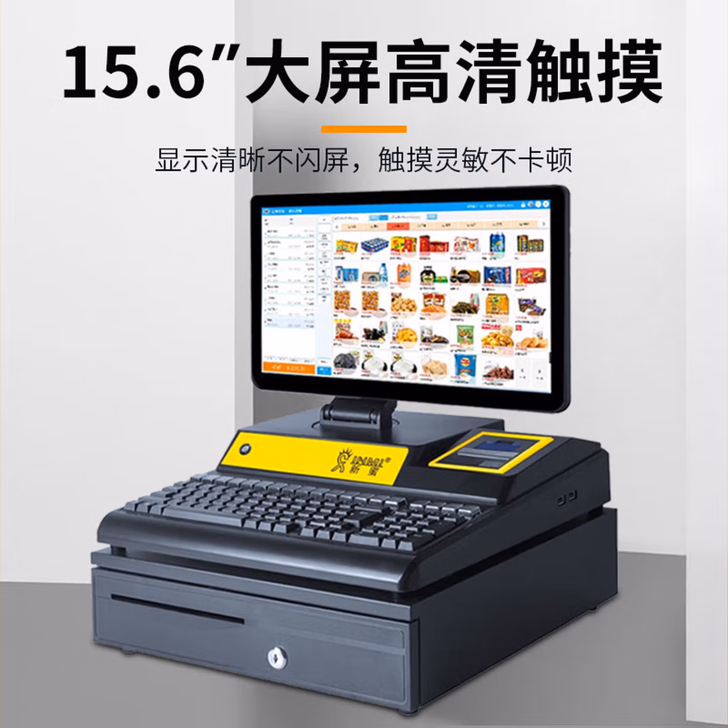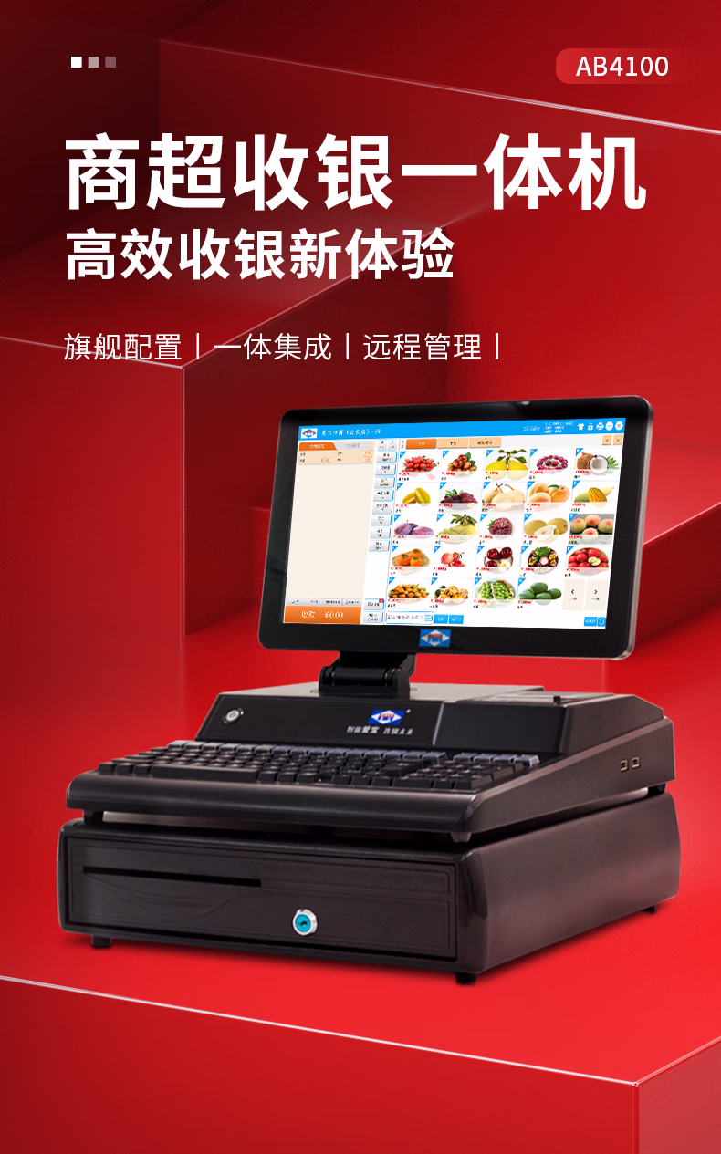 > 爱宝(Aibao) AB4100收银机一体机 超市服装便利店 收款机收银电脑系统 【6100升级版 】酷睿I3-128G硬盘 迎客收银-基础套餐