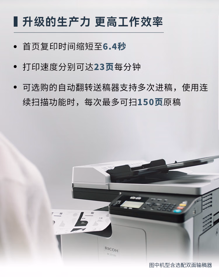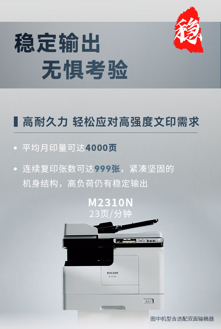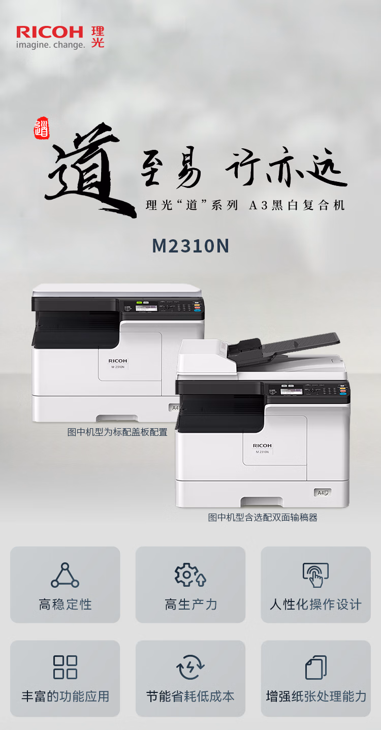 > 理光(Ricoh)M2310N A3A4黑白激光复合机打印机 打印复印扫描/有线网络 主机+盖板+单纸盒