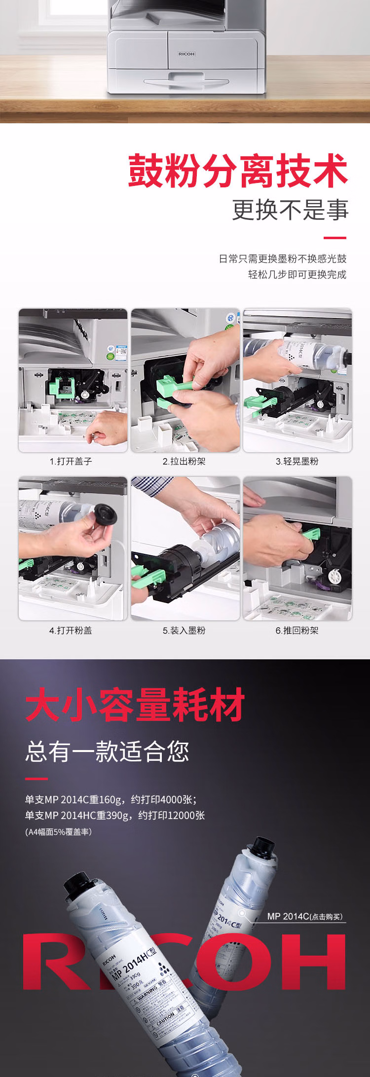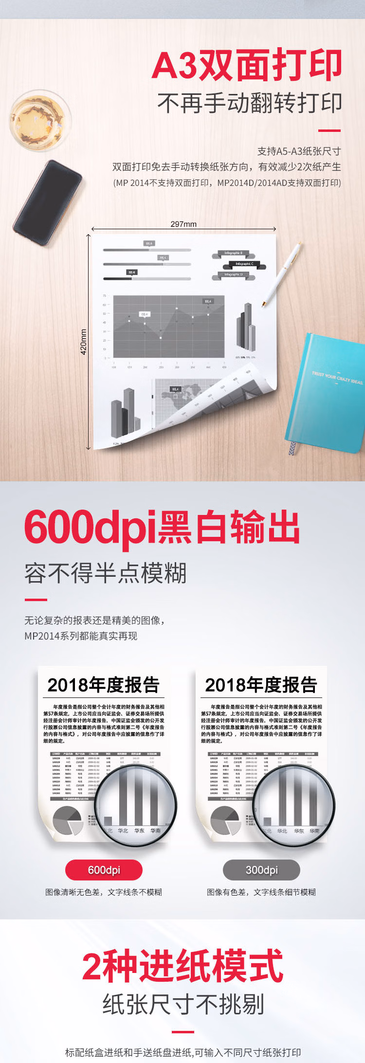 理光(Ricoh)MP 2014 A3A4黑白激光打印复印扫描一体机办公复印机