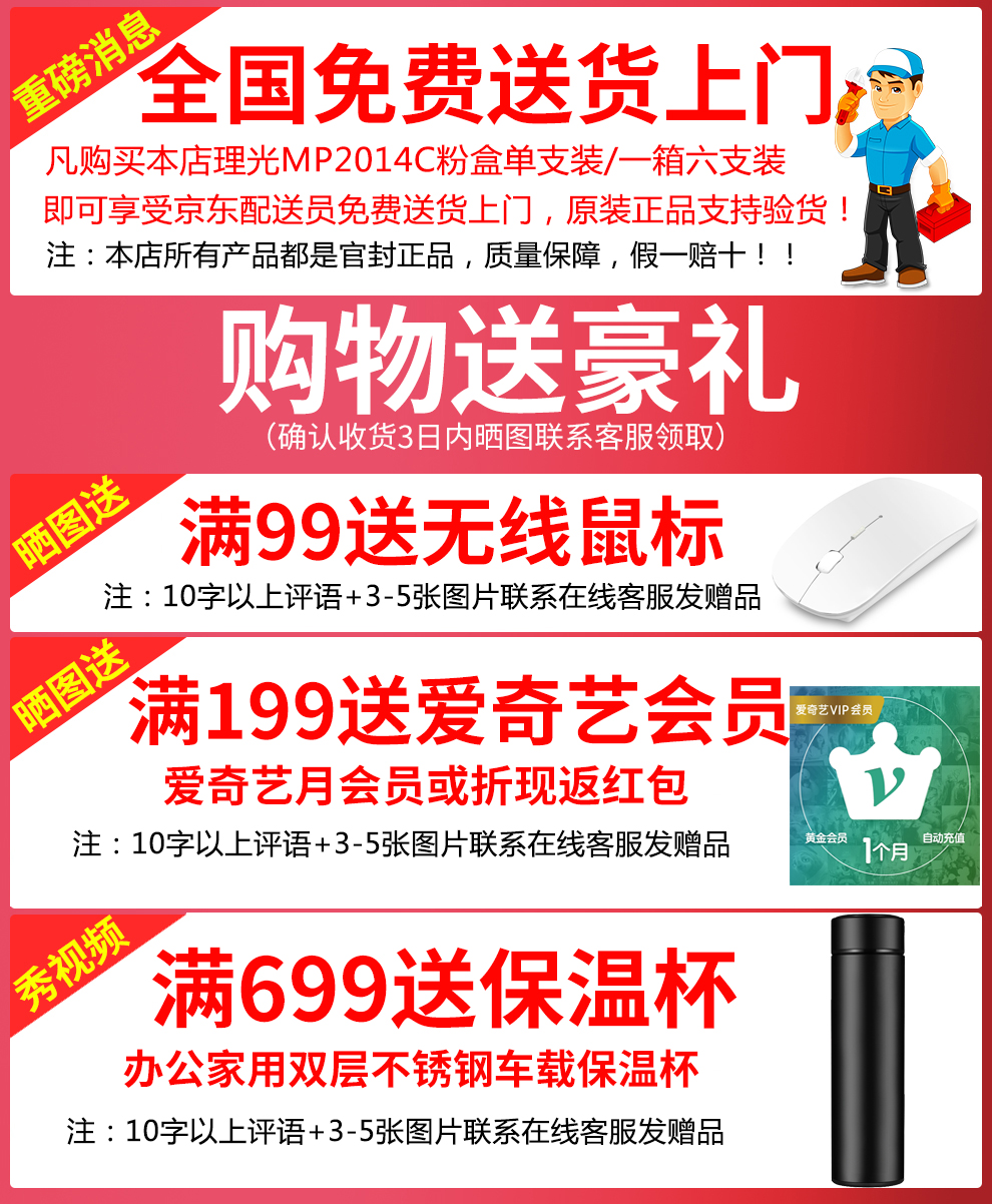 > 理光(RICOH)MP2014C碳粉原装黑色墨粉盒碳粉盒 适用于2014/2014D/2014AD 标准容量 MP 2014C墨粉盒单支装(4000页)