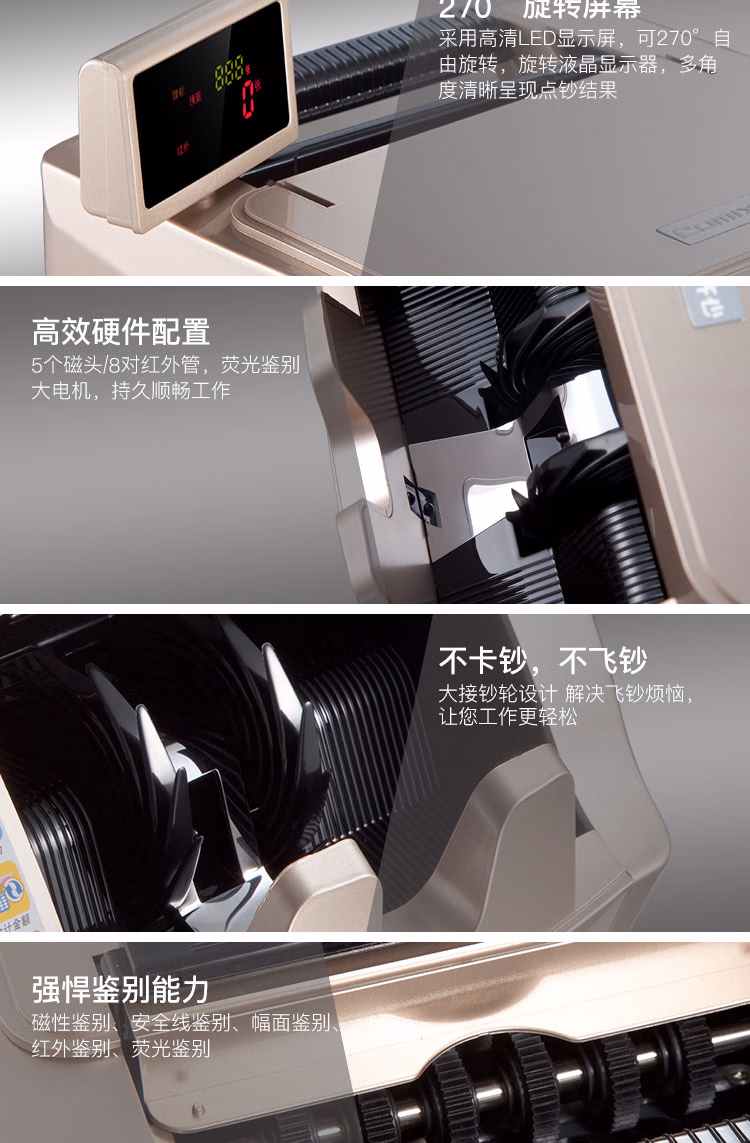 齐心(COMIX)JBYD-6168B 全智能红外B级点验钞机 点钞机 香槟色
