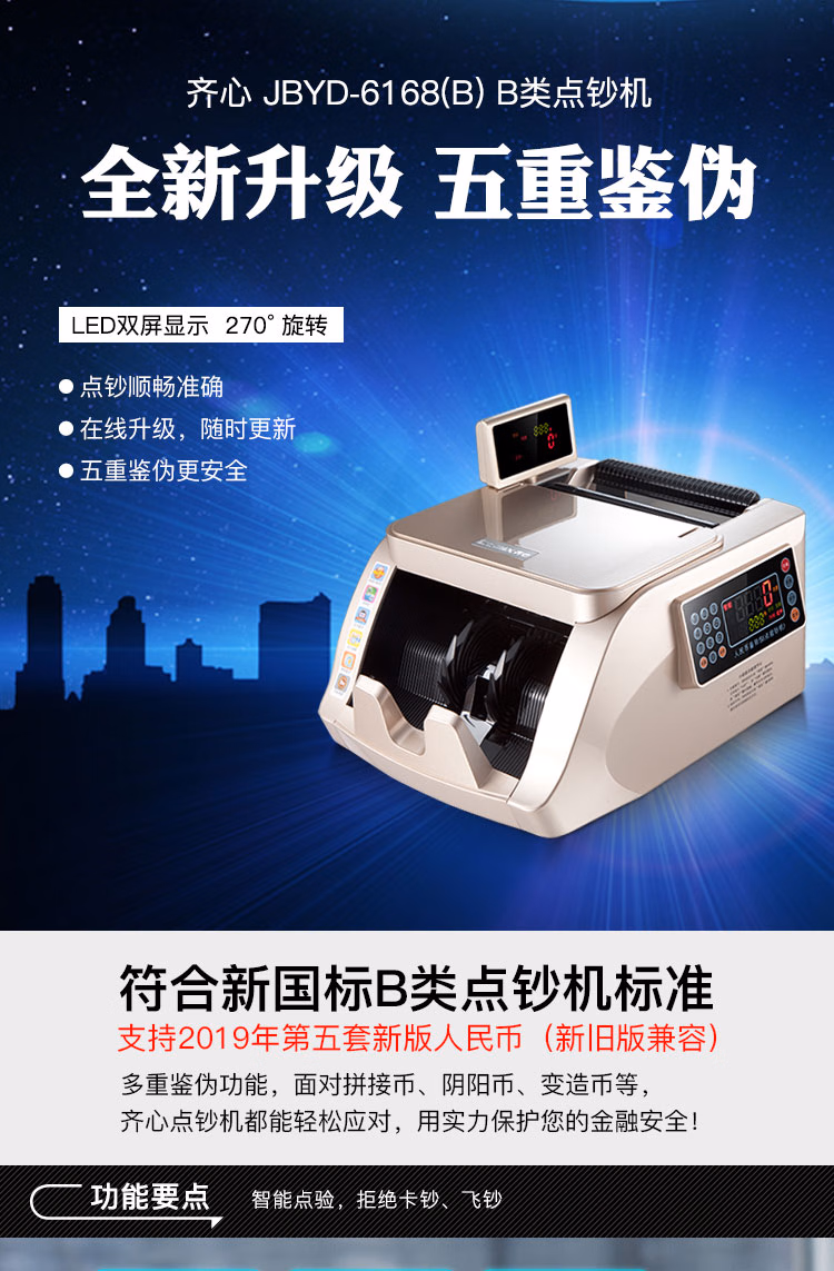 > 齐心(COMIX)JBYD-6168B 全智能红外B级点验钞机 点钞机 香槟色