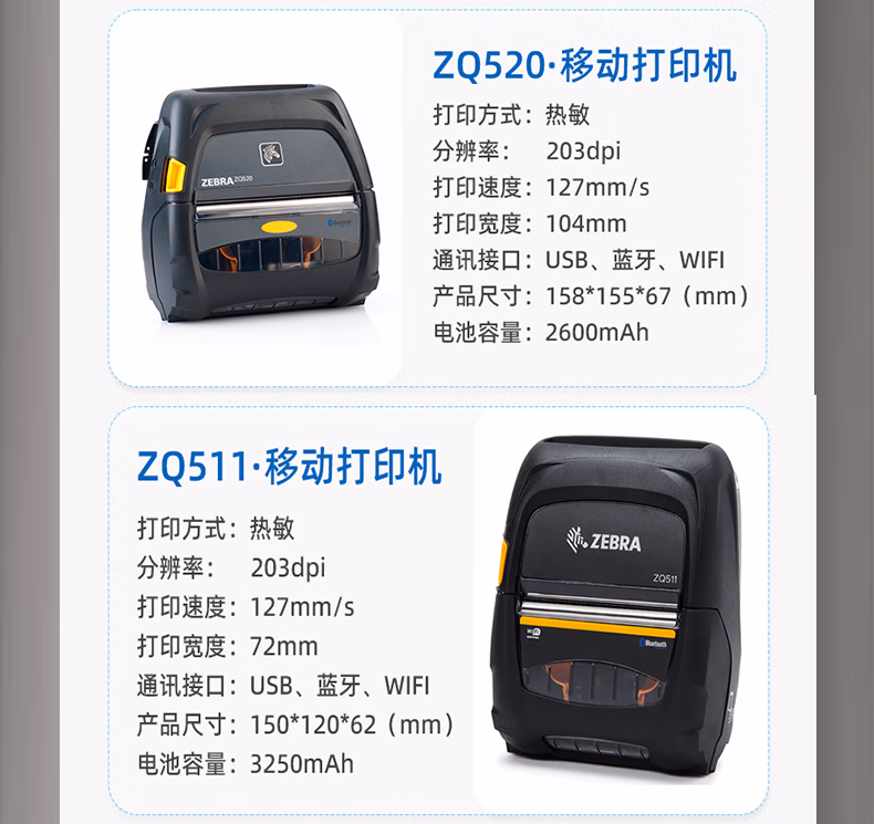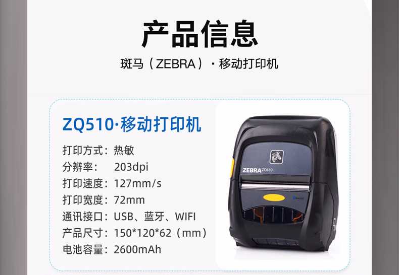 > ZEBRA斑马 ZQ510/ZQ511/ZQ520/ZQ521移动打印机ZQ500系列移动小票机 便携式条码机 ZQ511(72mm打印宽)