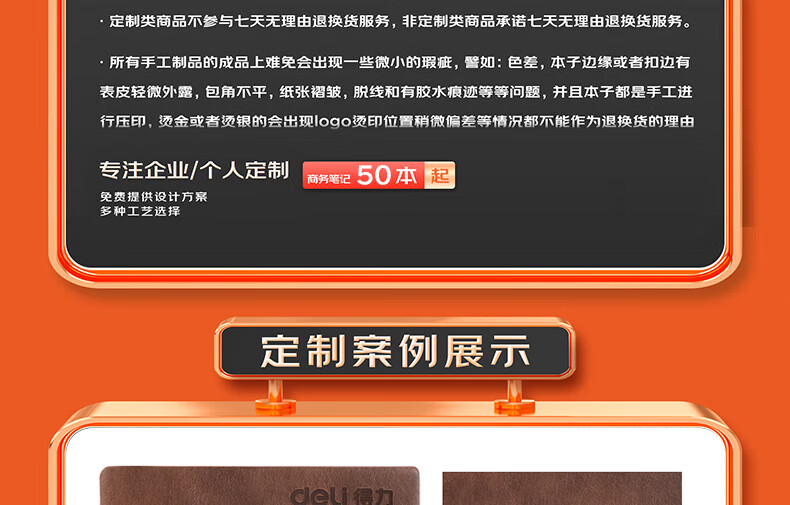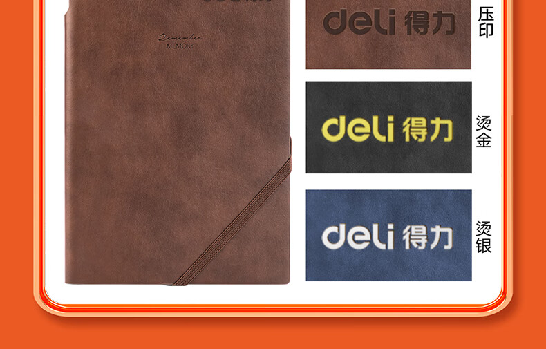 > 得力(deli)50本25K96张笔插绑带笔记本子可定制企业logo 记事本皮面本 棕色22215