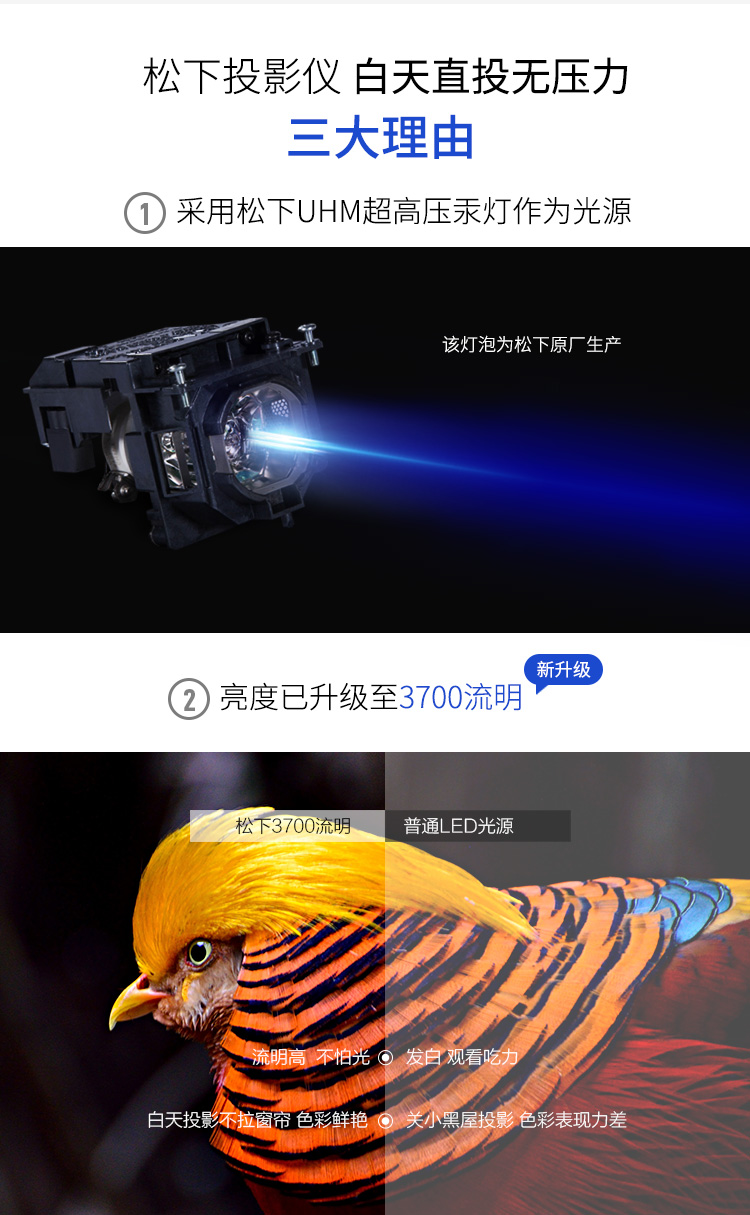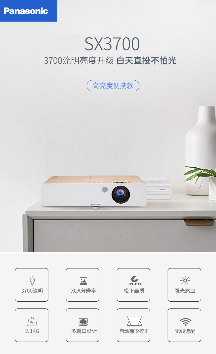 > 松下(Panasonic)PT-SX3700 投影仪 投影机办公 商务(标清 3700流明 A4尺寸 便携轻便 强光感应功能)