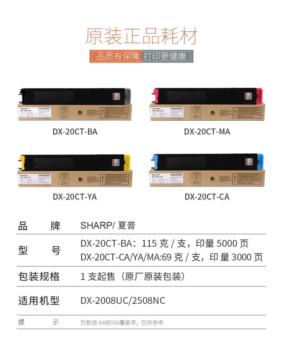 > 夏普原装DX-20CT-BA/CA/MA/YA彩色粉盒墨粉DX-2008UC/2508NC碳粉耗材 DX-20CT-MA 红色