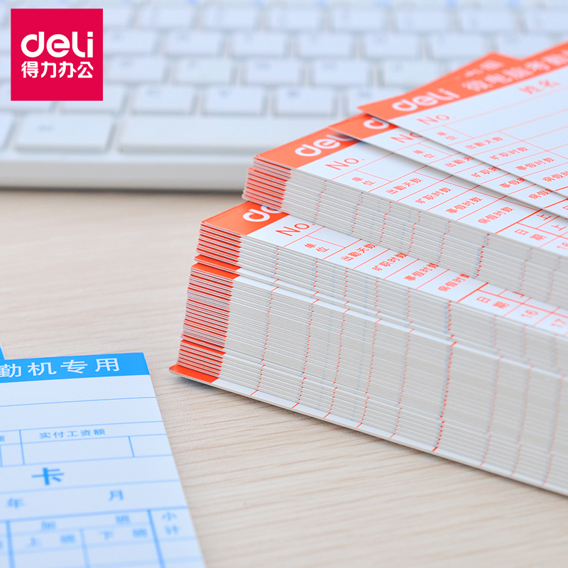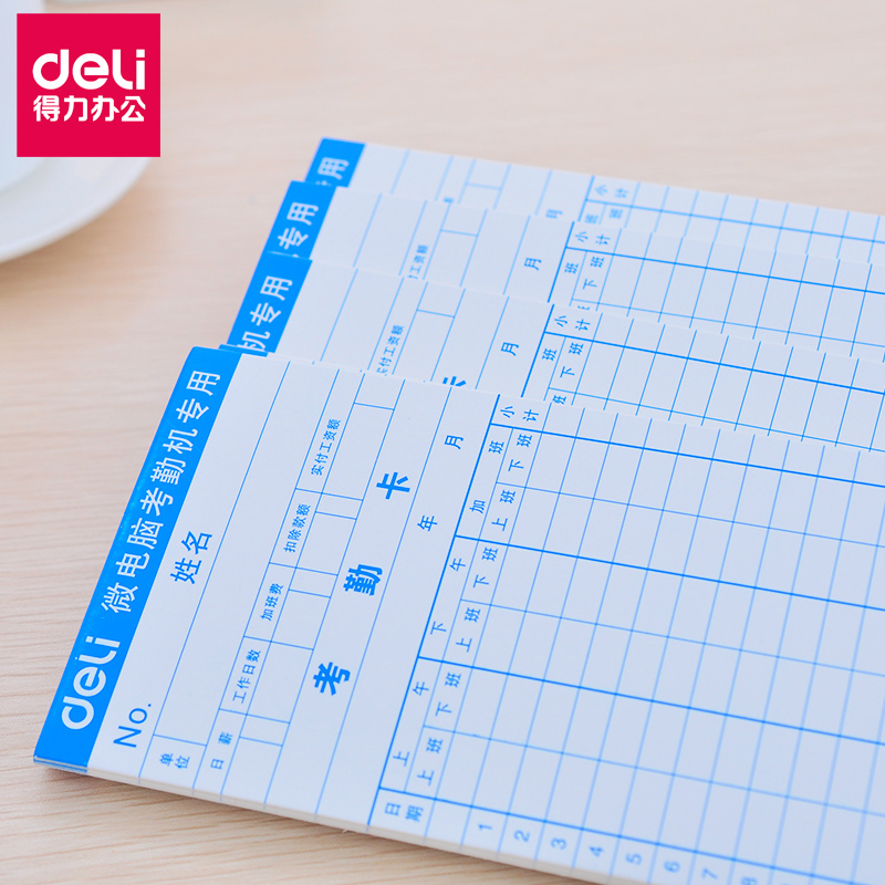 > 得力(deli)考勤卡 打卡纸 考勤卡纸 打卡纸卡微电脑打卡片双面打印 100张/包