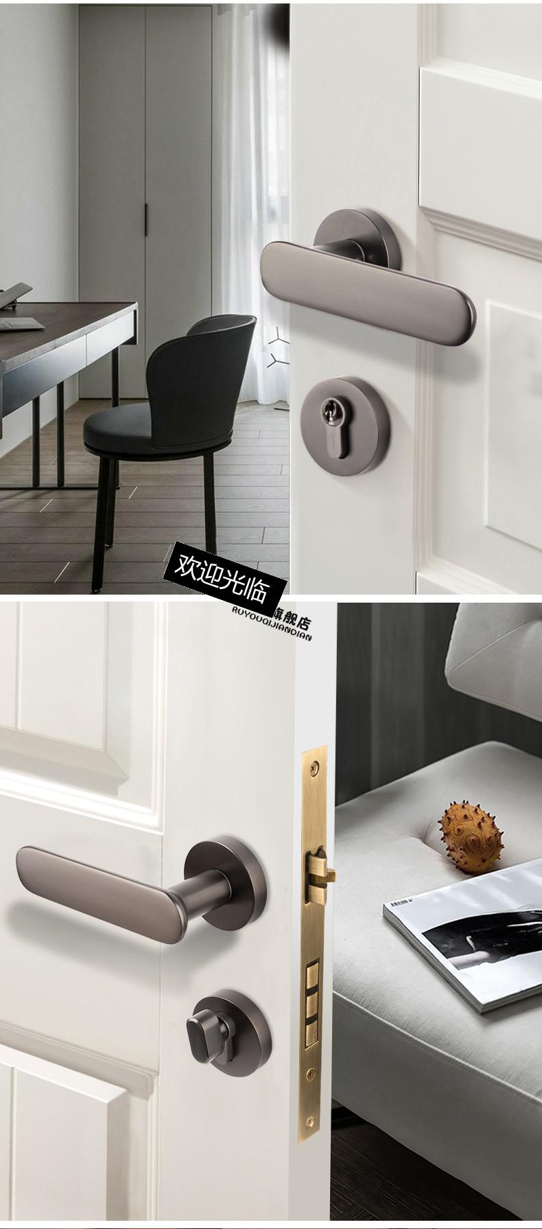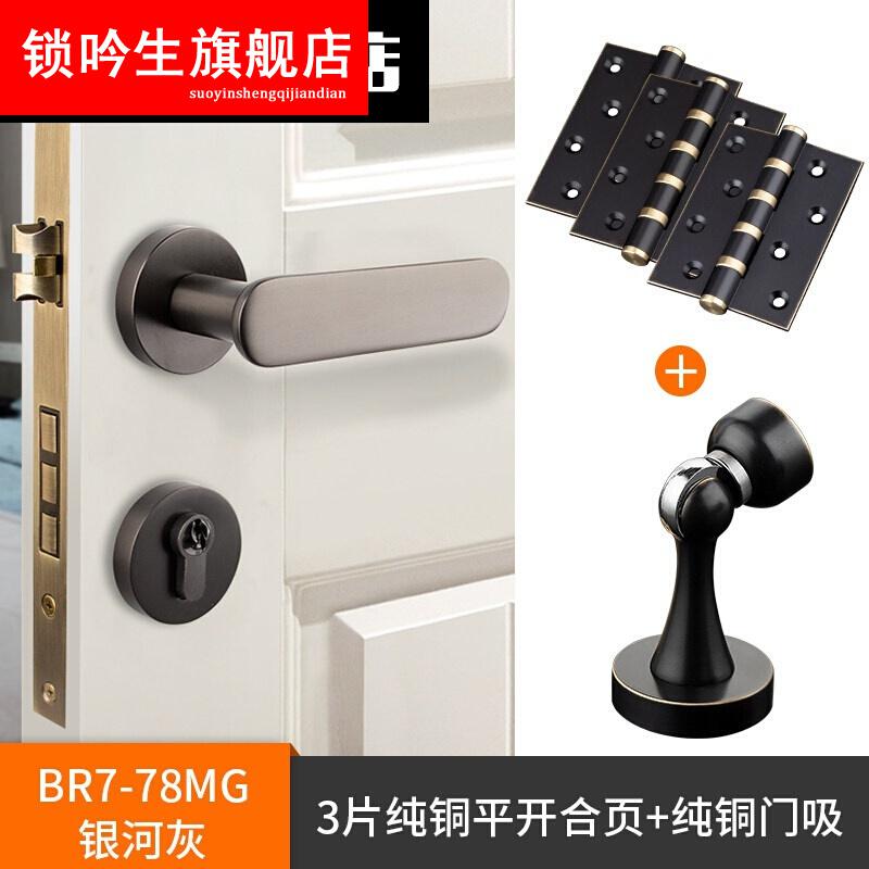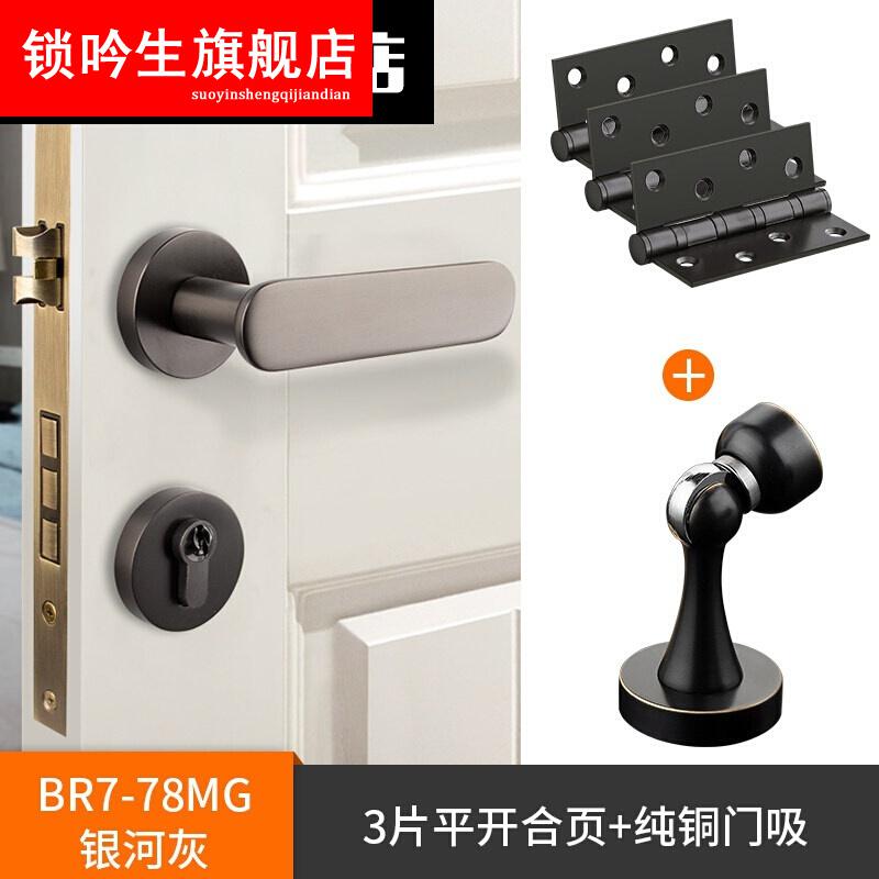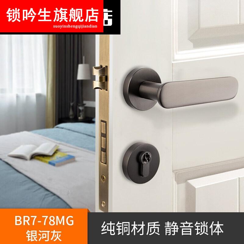 磁吸锁全铜室内磁吸静音门锁家用银河灰美式现代时尚实心门把手 亚黑色 35-50mm 左内 带钥匙