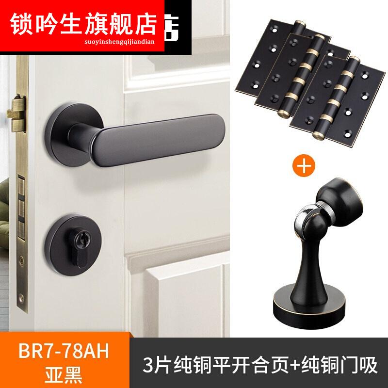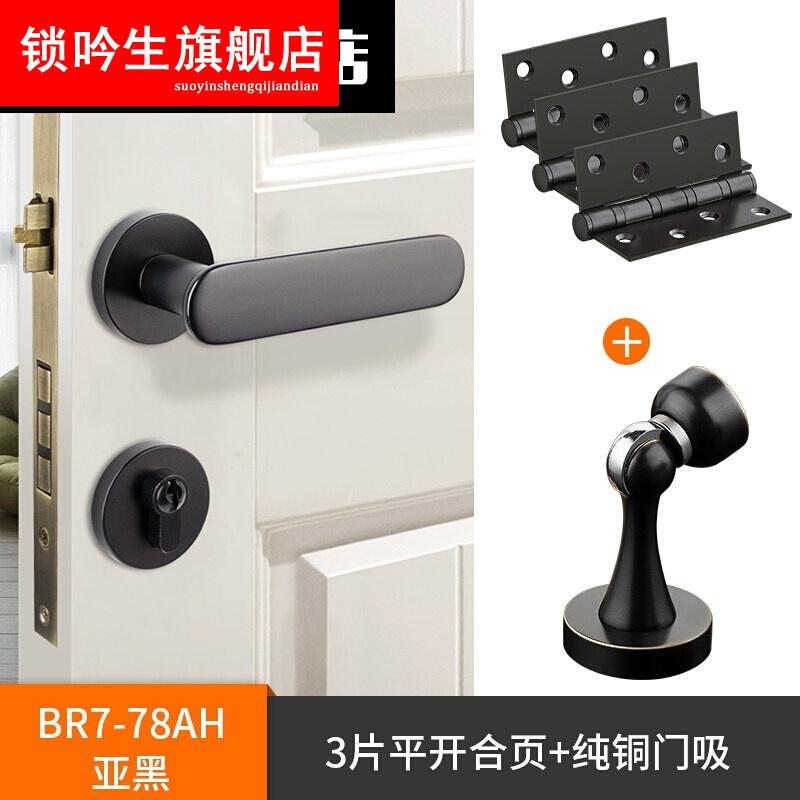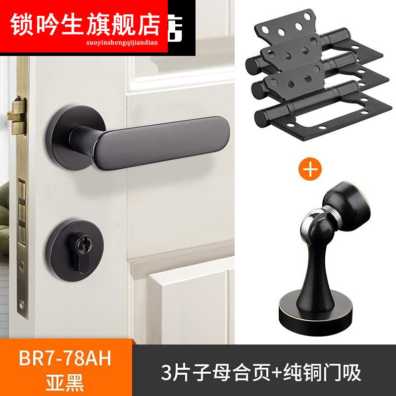 > 磁吸锁全铜室内磁吸静音门锁家用银河灰美式现代时尚实心门把手 亚黑色 35-50mm 左内 带钥匙