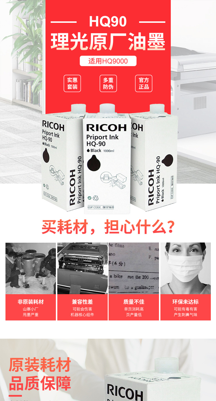 > 理光(Ricoh)HQ90(1000cc/瓶*5支)黑油墨 适用于HQ9000