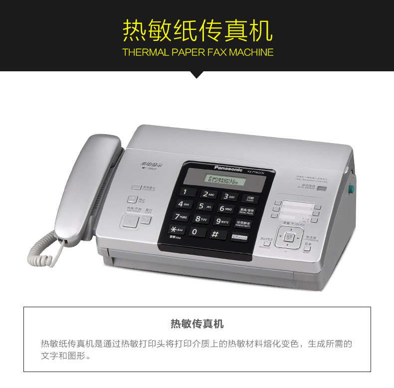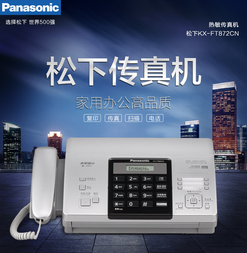 松下(Panasonic)KX-FT872CN 热敏纸复印传真机办公家用电话一体机中文显示(银色)