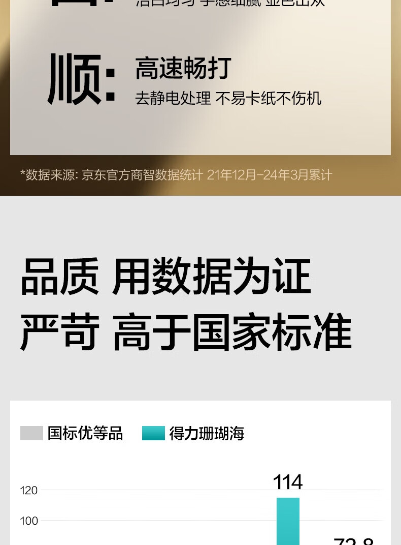 > 得力(deli)珊瑚海A4打印纸 70g500张*5包一箱 双面打印复印纸 企业采购优选 5箱囤货装7361【销冠系列】