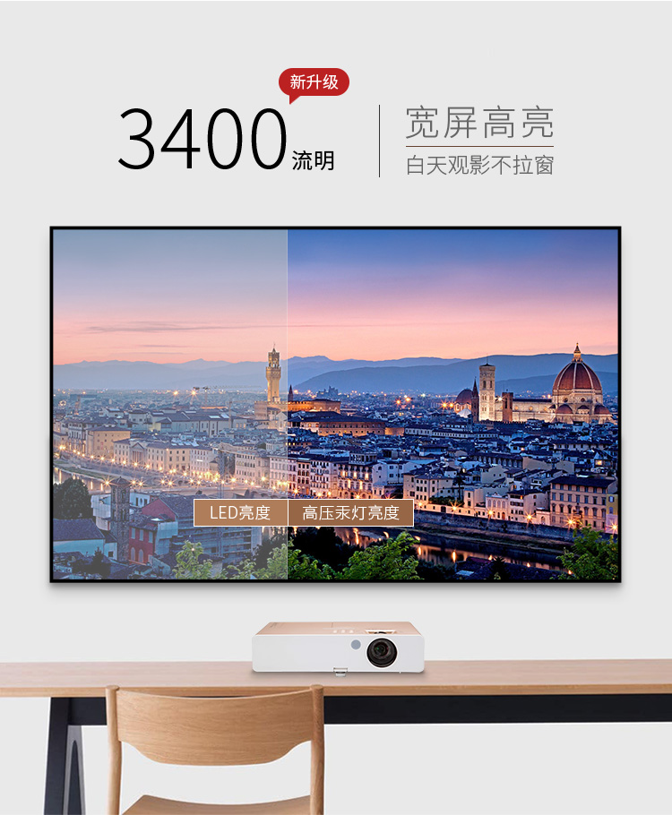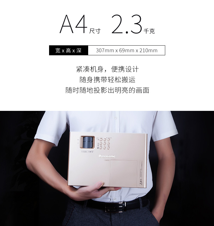 > 松下(Panasonic)PT-SW3400 投影仪办公 投影机商务会议 家用(高清宽屏 3400流明 A4尺寸 轻巧便携)