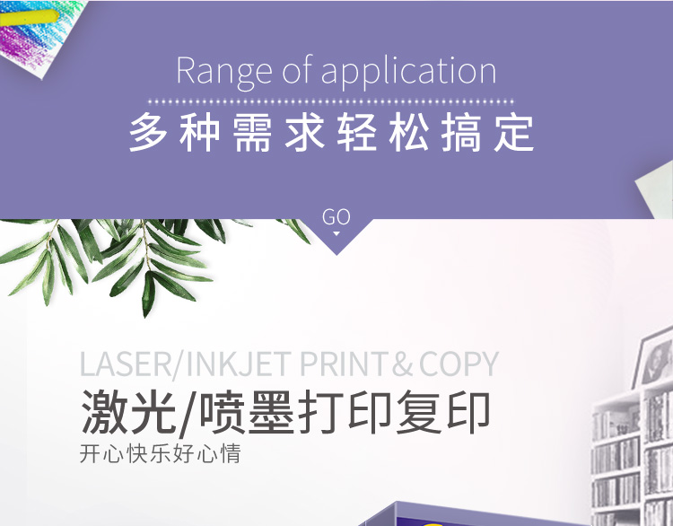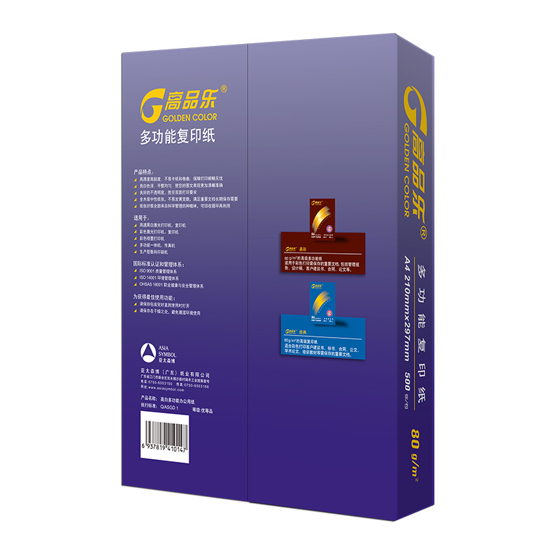 亚太森博 炫彩高品乐 A4 80g 复印纸 500张/包 5包/箱 J
