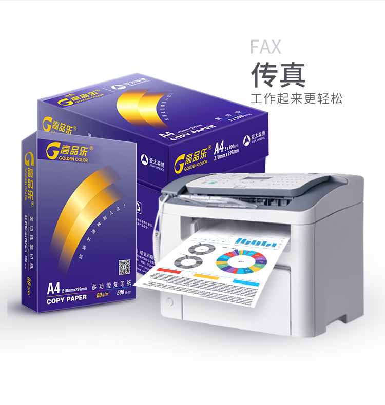 > 亚太森博 炫彩高品乐 A4 80g 复印纸 500张/包 5包/箱 J