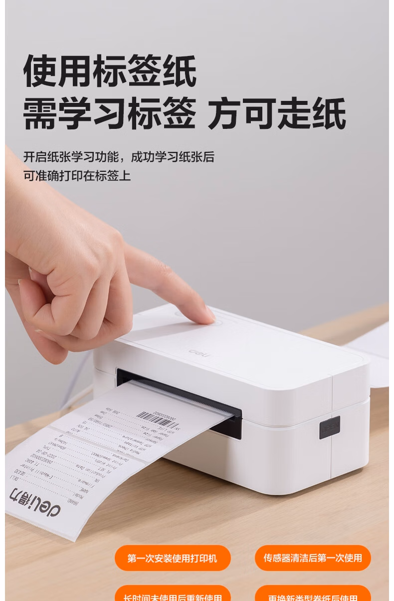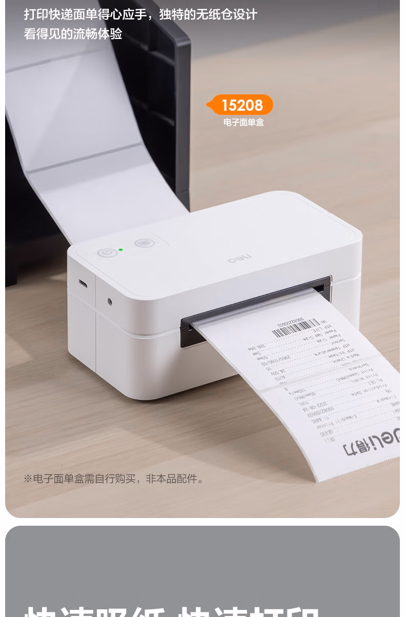 > 得力(deli)热敏不干胶打印机 快递仓储物流面单 超市食品服装价格标签打印机 商用办公二维码条码打印机 【GE435】一联单_电脑版+面单盒