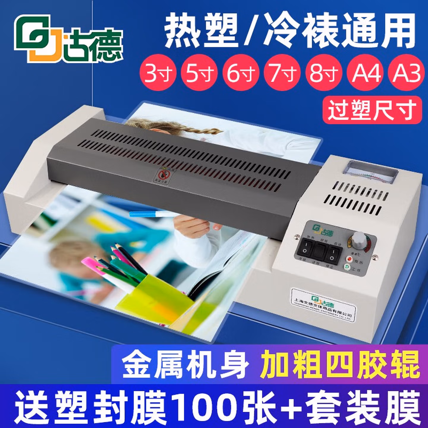 > 古德a3a4塑封机办公过塑机照片过胶机相片压膜机文件全自动覆膜机商用家用专业塑封膜通用封塑机朔封封膜 旗舰A3款 (赠:套装膜+6寸膜+倒圆角器)