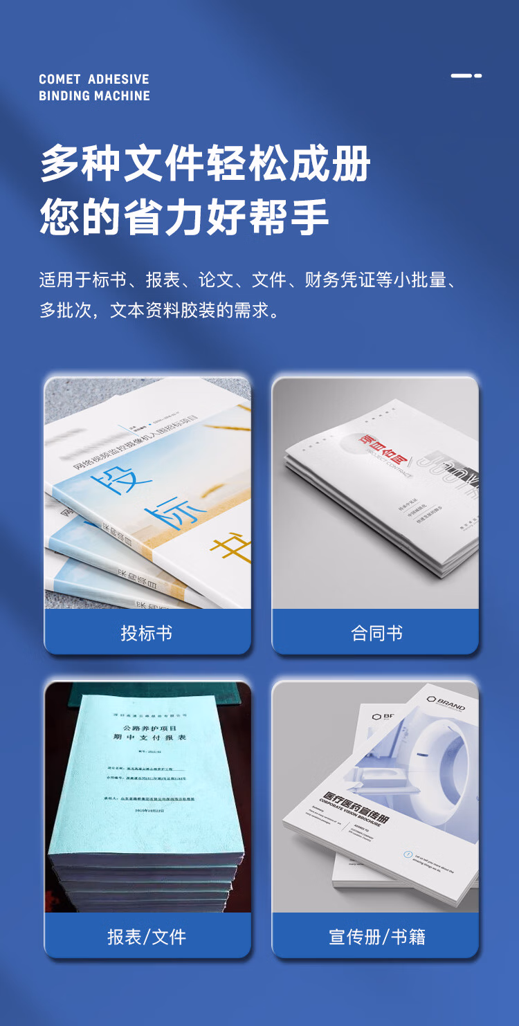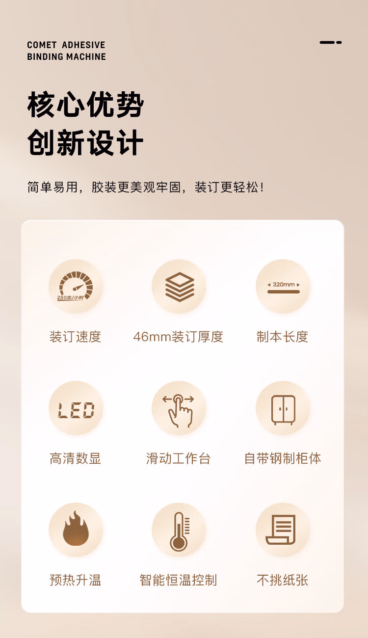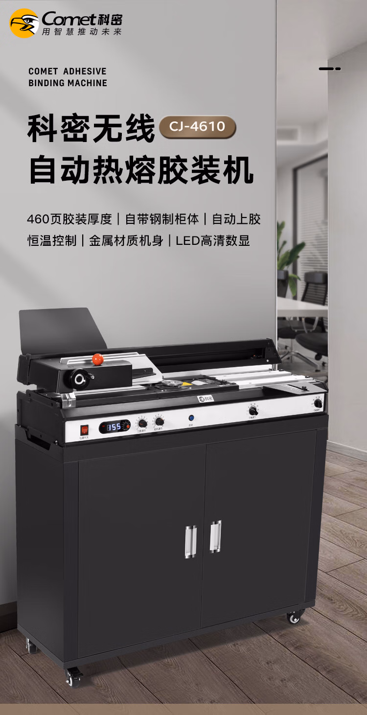 > 科密(comet)自动无线胶装机 热熔胶粒电动装订机 合同标书文件档案书籍图文制作过胶机CJ-4610带柜子