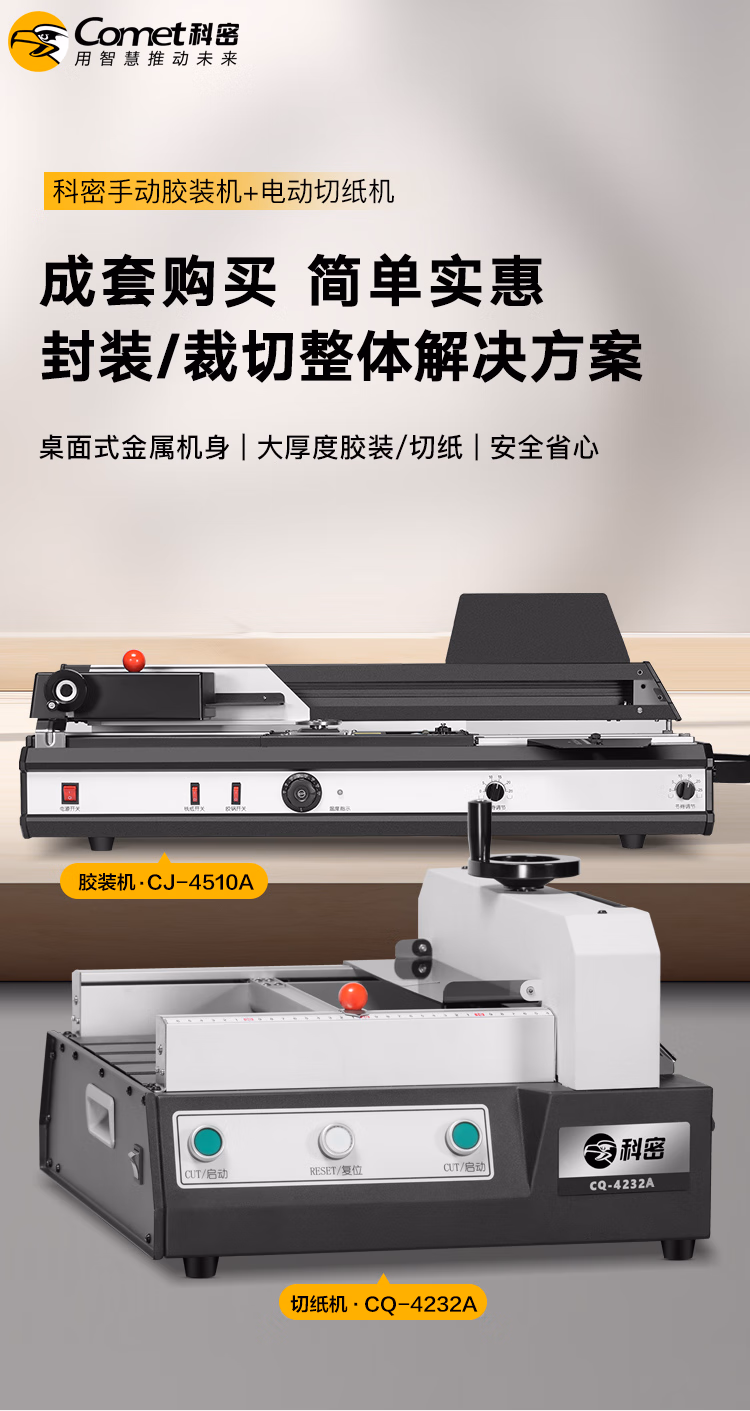 > 科密(comet)桌面无线胶装机 合同文件标书书籍图文装订机CJ-4510A+电动切纸机CQ-4232A