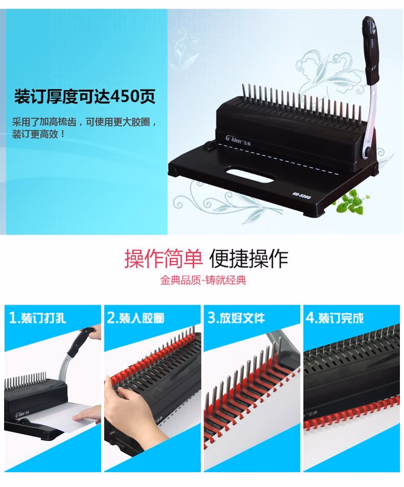 > 金典(GOLDEN)GD-3300钉条文本装订机21孔胶圈打孔机夹条装订机压条装订机 金典GD-3300钉条文本装订机21孔胶圈打孔机夹