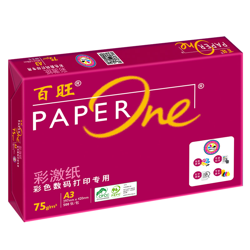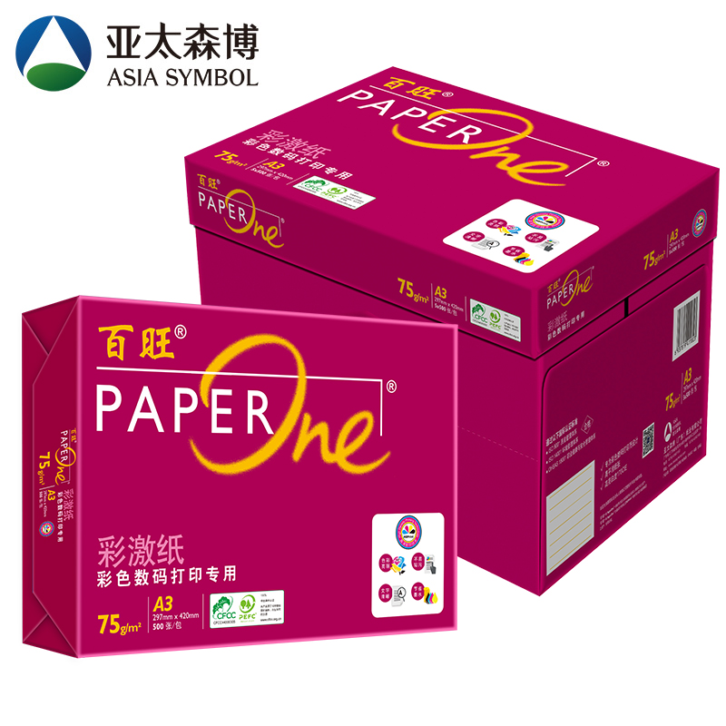 > 亚太森博 红百旺A3 高档彩激复印纸 75g 5包/箱 500张/包 J