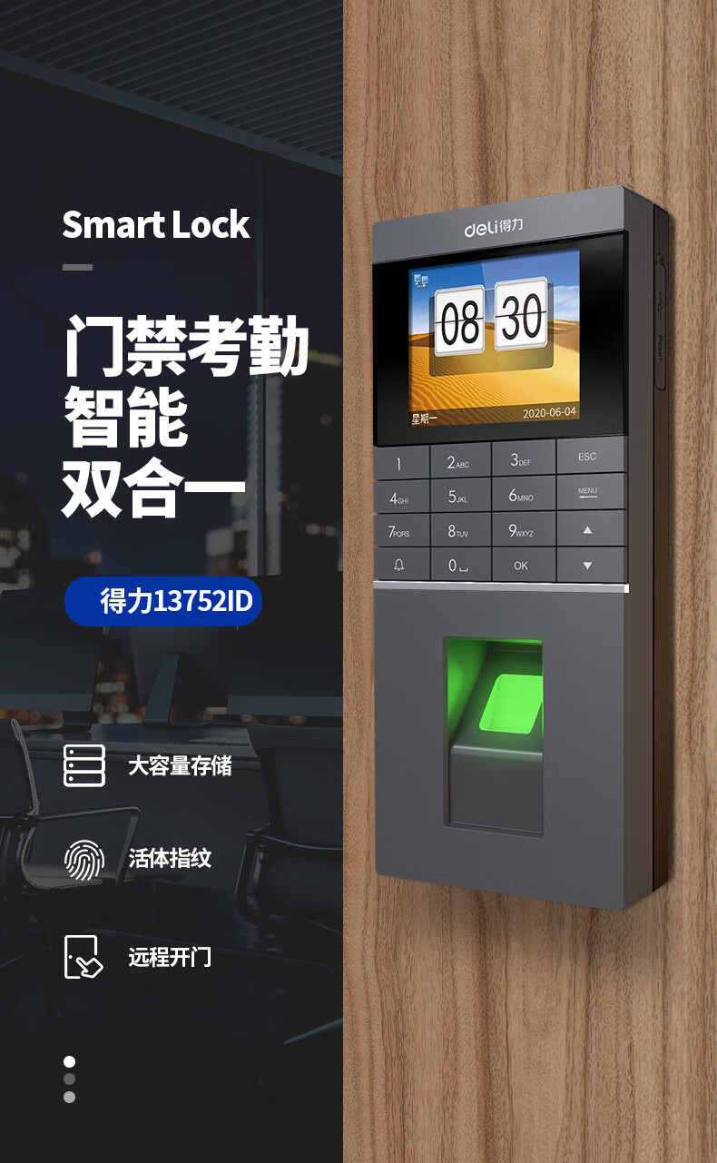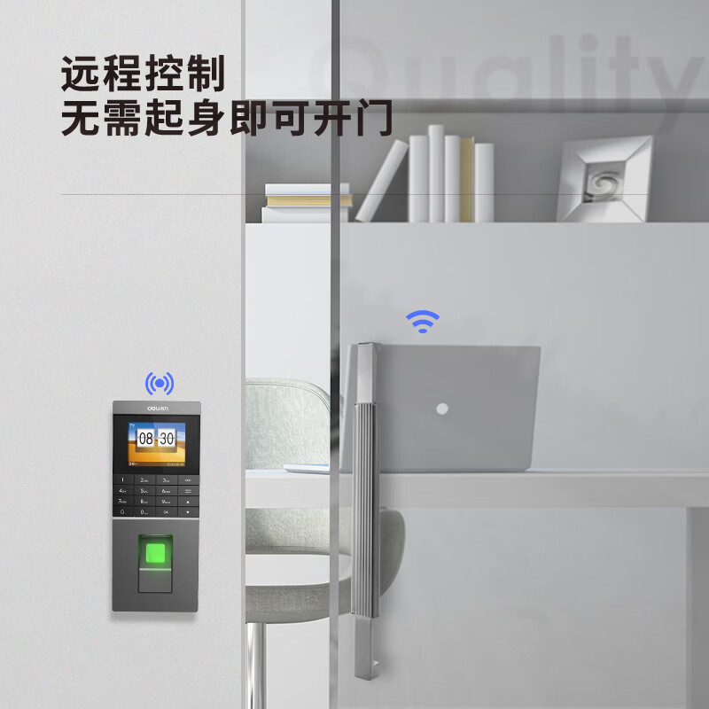 得力(deli)指纹门禁考勤一体机 ID卡门禁机 单开玻璃门电插锁套装13752ID