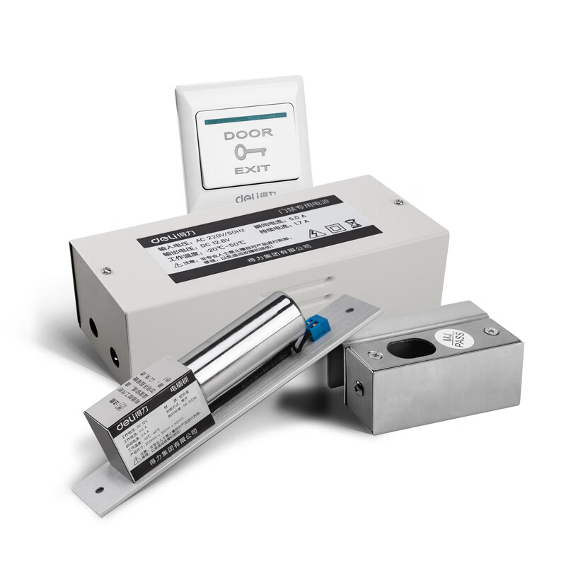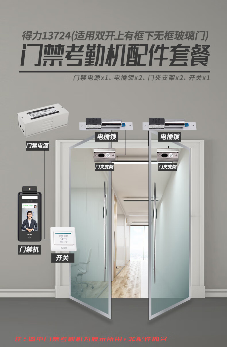 > 得力(deli)指纹门禁考勤一体机 ID卡门禁机 单开玻璃门电插锁套装13752ID