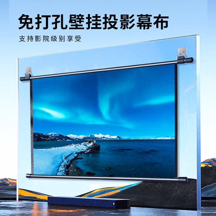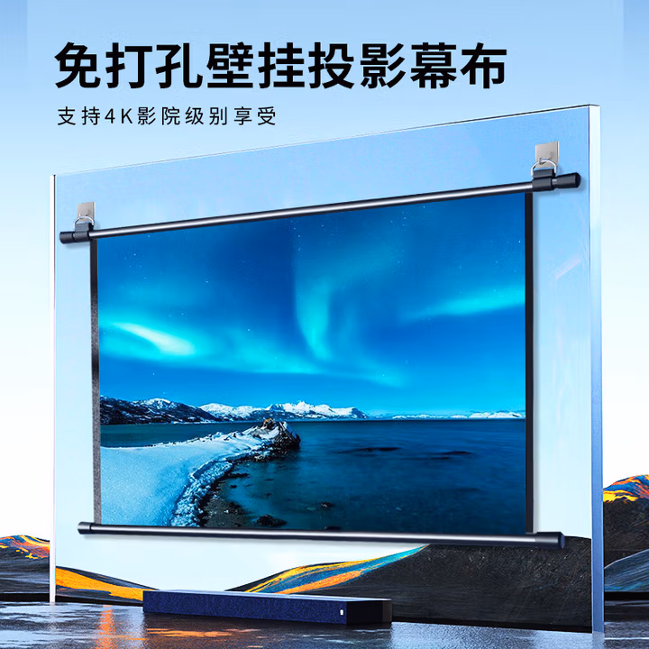 > 美硕(MEISHUO)挂壁幕布简易安装投影仪幕布【免打孔】高清投影机幕适配小米极米坚果爱普生
