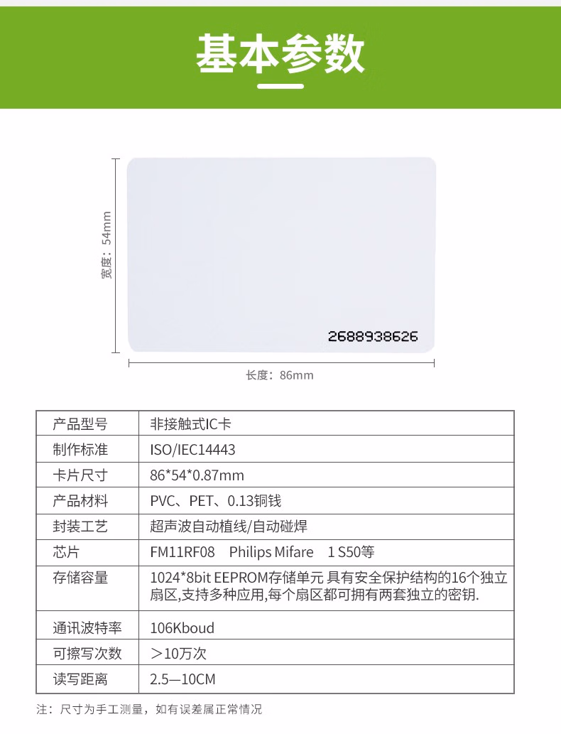 > ZKTECO 熵基考勤机打卡机消费感应IC卡IC薄卡考勤卡智能门禁卡白卡家居卡nfc门禁卡电梯卡饭卡 标准色 20张起订