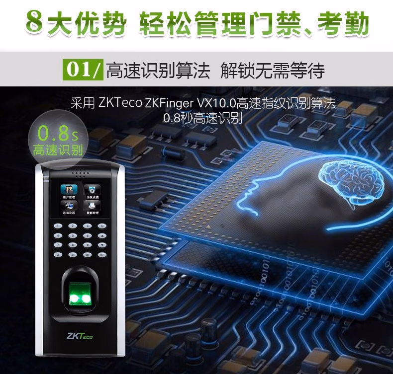 ZKTECO ZKTeco熵基科技F7PLUS指纹门禁机考勤一体机刷卡门禁系统玻璃门门禁锁电磁锁nface128 F7plus(指纹+密码) 官方标配