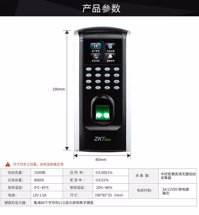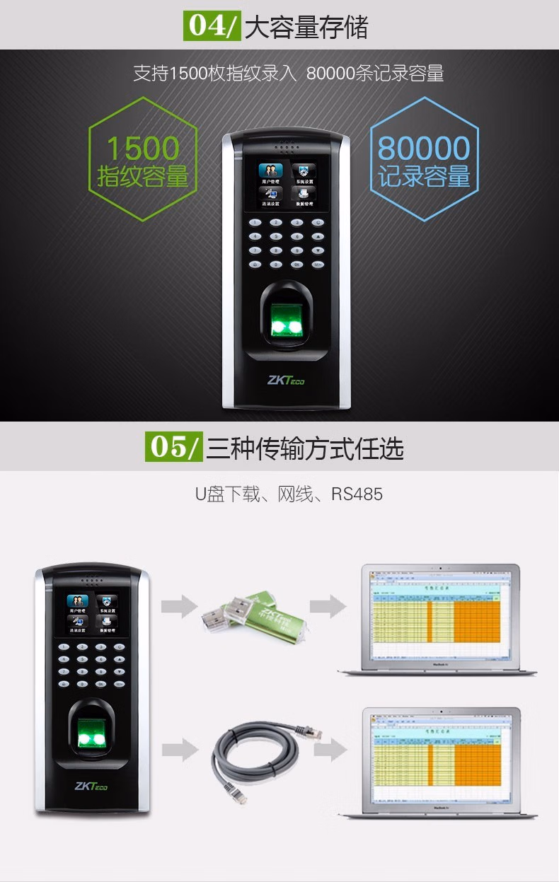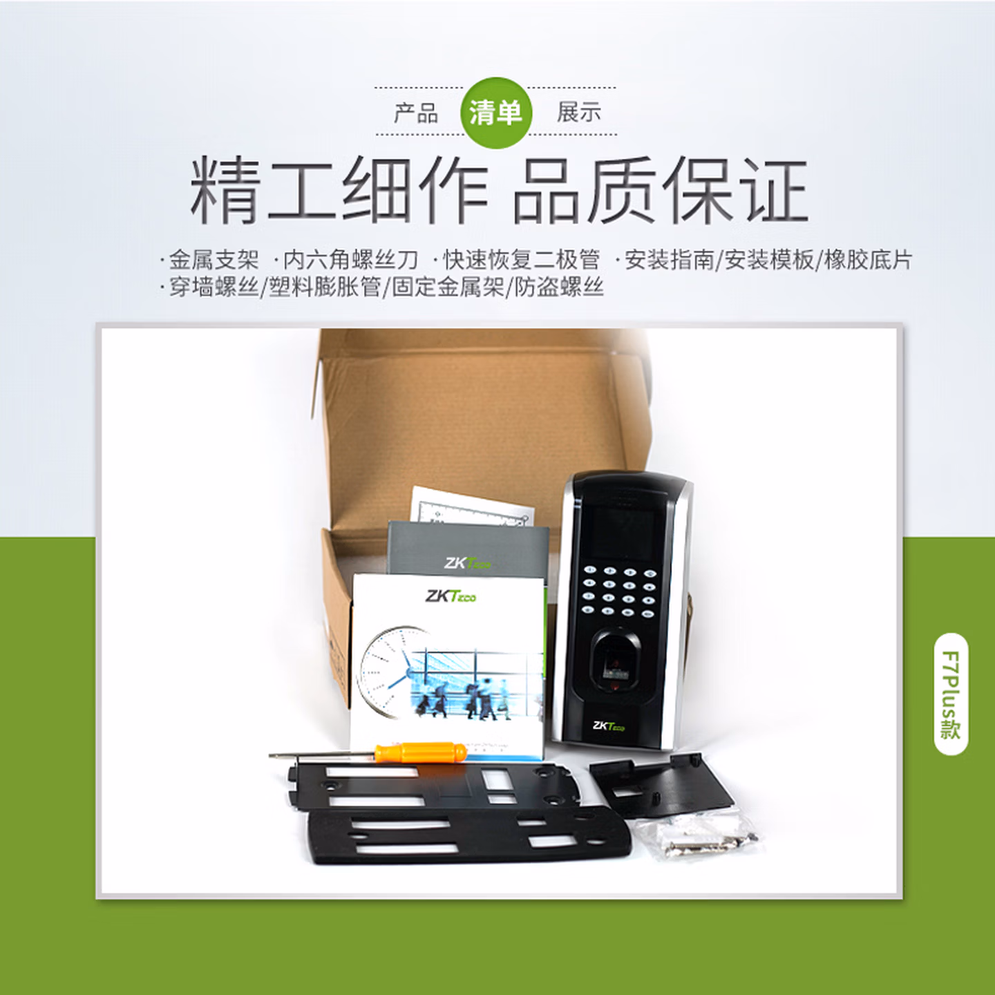 > ZKTECO ZKTeco熵基科技F7PLUS指纹门禁机考勤一体机刷卡门禁系统玻璃门门禁锁电磁锁nface128 F7plus(指纹+密码) 官方标配