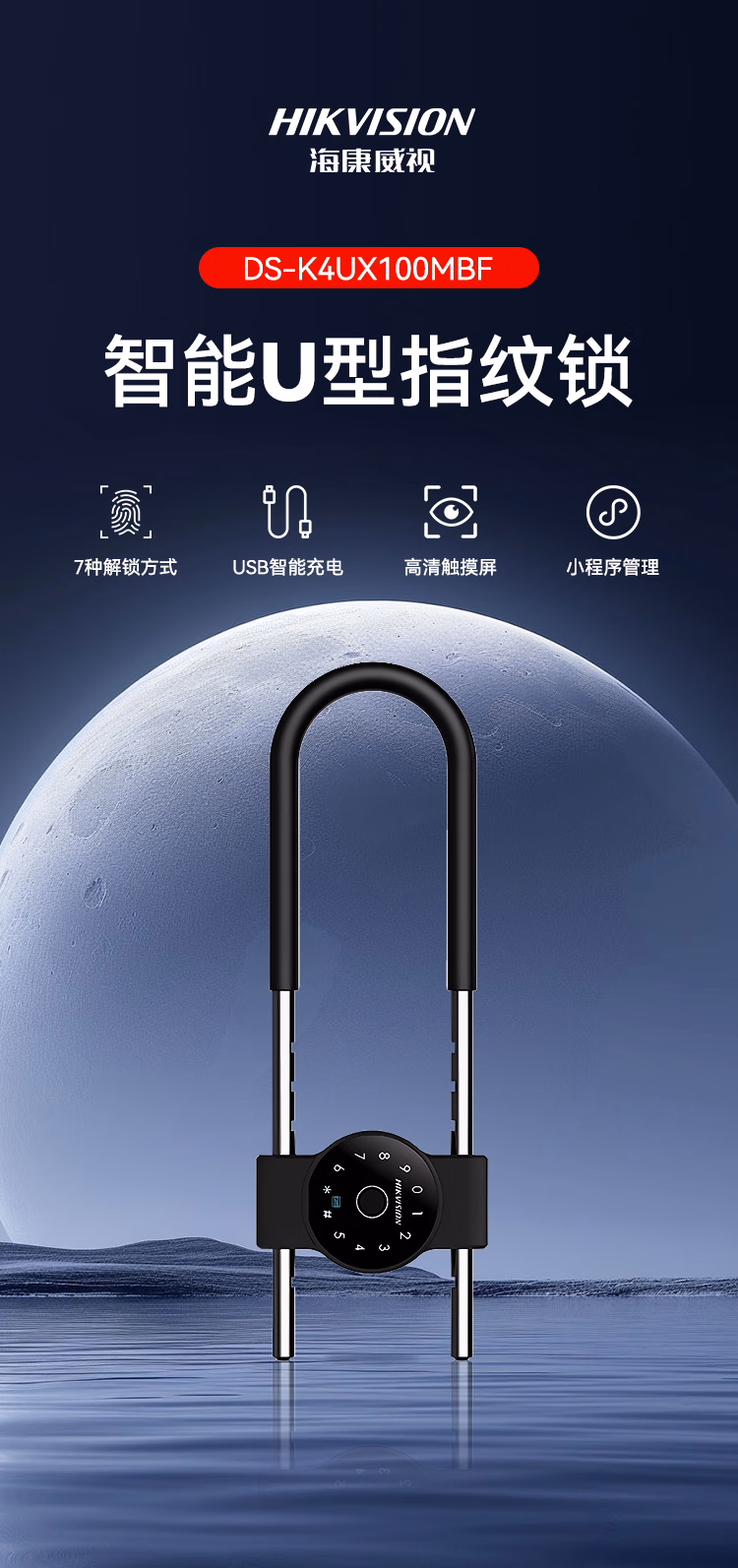 HIKVISION海康威视玻璃门智能U型门禁免开孔 办公室智能密码U型门禁ic卡门禁手机蓝牙小程序管理U型门禁