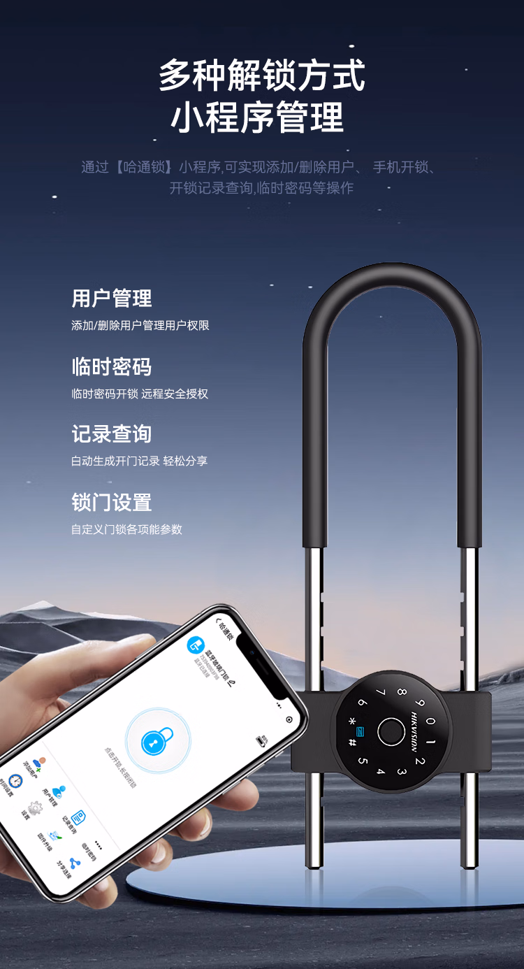 > HIKVISION海康威视玻璃门智能U型门禁免开孔 办公室智能密码U型门禁ic卡门禁手机蓝牙小程序管理U型门禁