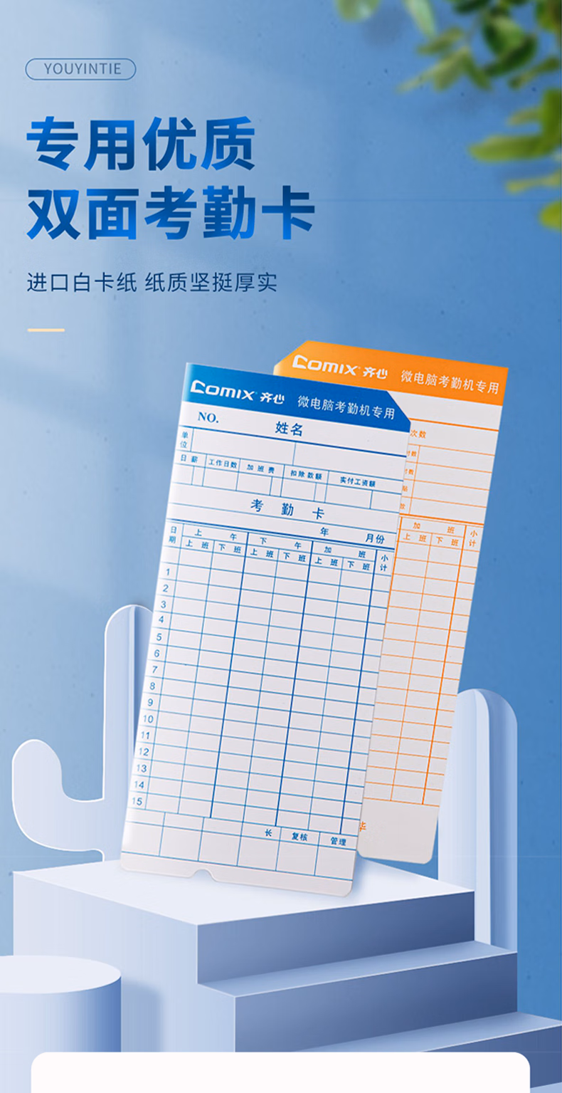 > 考勤纸卡打卡纸微电脑出勤签到机纸质考勤机员工打卡器卡钟通 优质双面考勤卡【50张】