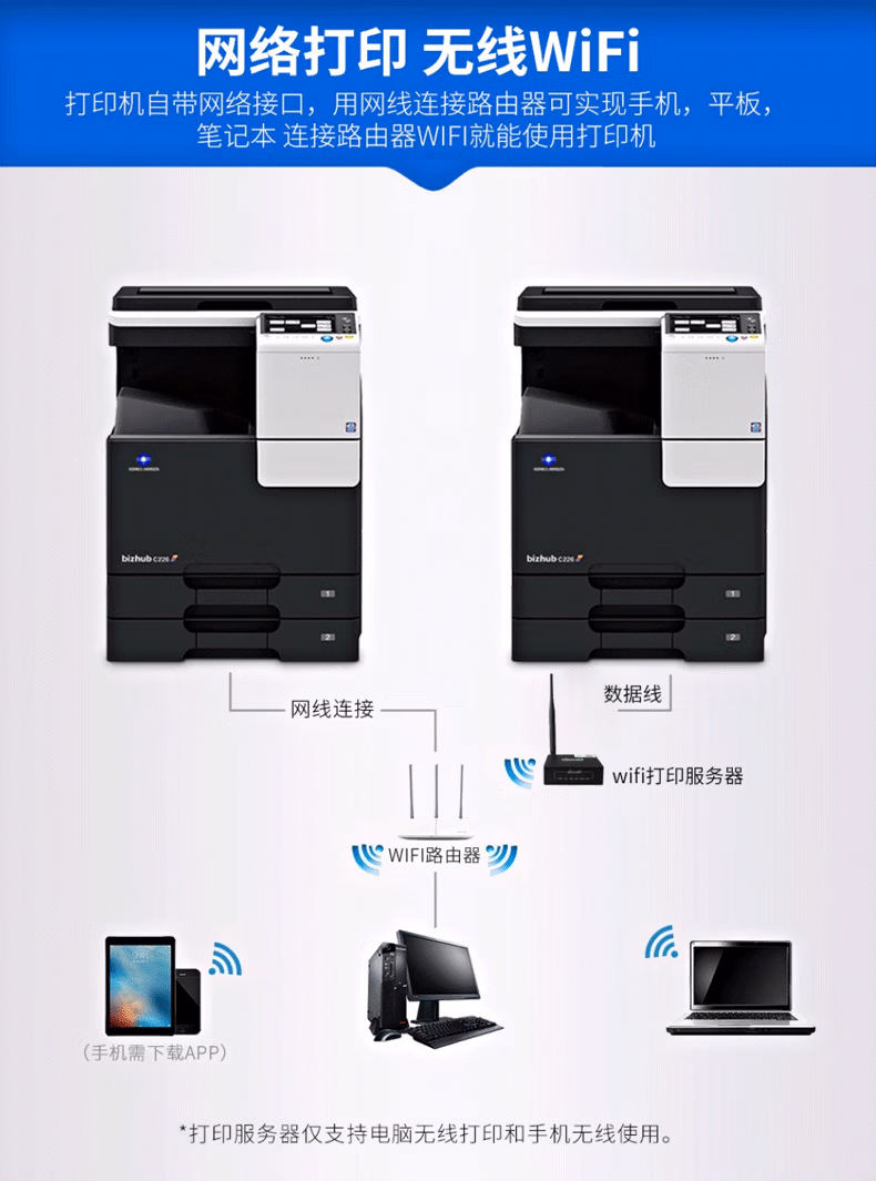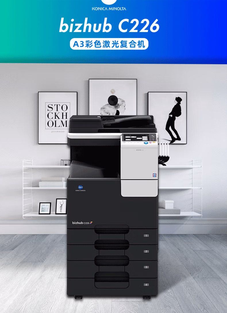 > 柯尼卡美能达(KONICA MINOLTA) C226美能达打印机a3彩色激光复合机大型商用办公 官方标配(双面打印+盖板+双层纸盒) C226(送三年维保+无线wifi服务器)