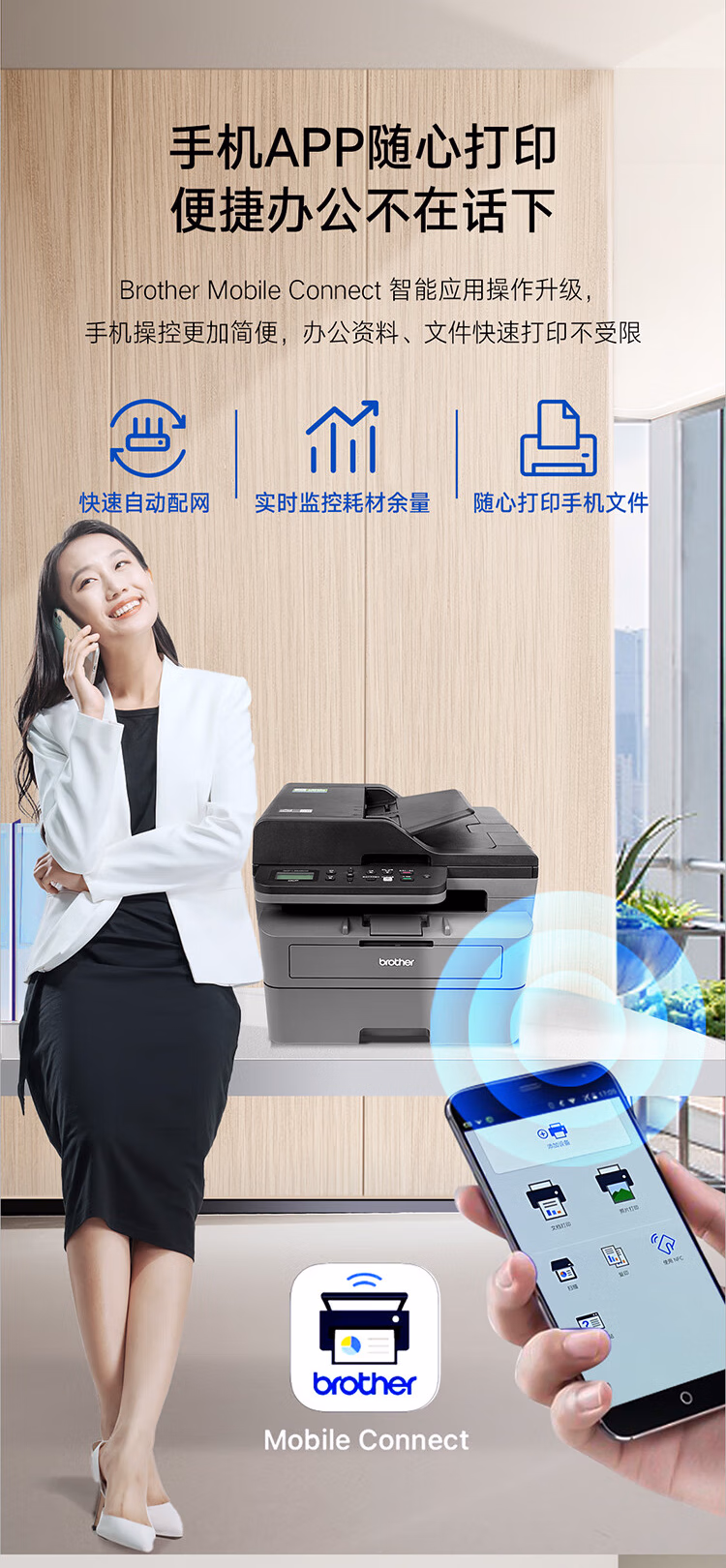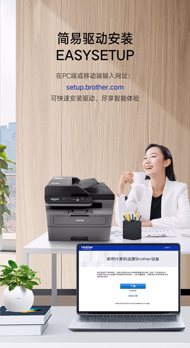 > 兄弟(brother) DCP-L2548DW 黑白激光一体机(34ppm 有线&无线 远程 自动双面打印 自动输稿器)